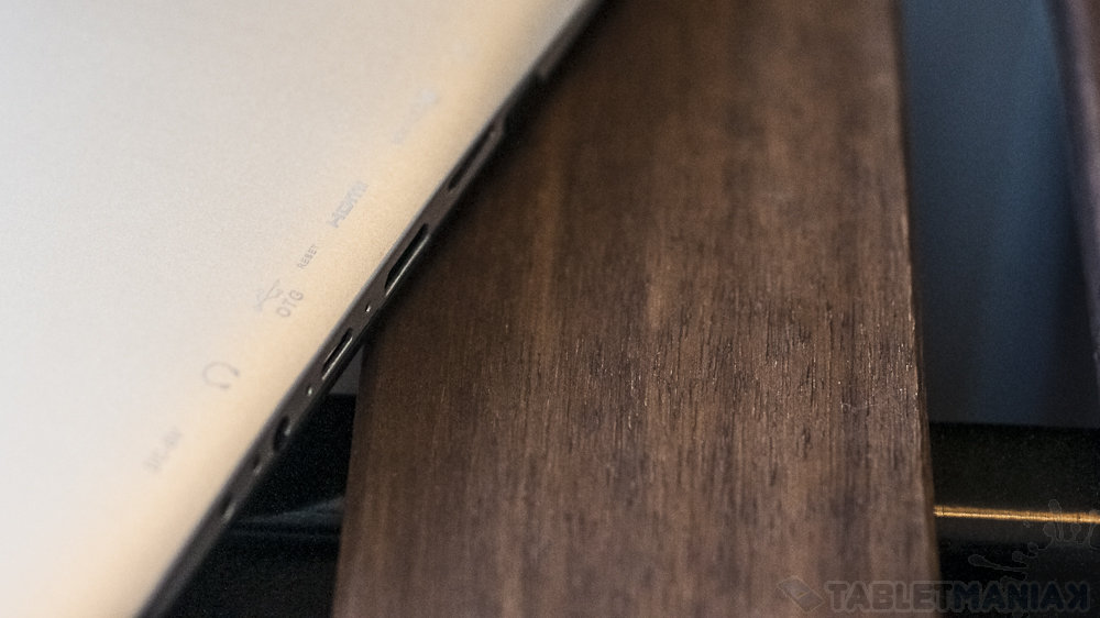 Mając porównanie z trochę większym ORIONem 101, mogę z przekonaniem stwierdzić, że TAB R974.2 jest solidniejszy. Zawdzięcza to głównie braku klapki osłaniającej porty i wyciągnięciu wszystkich na zewnątrz, umożliwiając użytkownikowi bezpośredni dostęp do – kolejno – gniazda zasilania, gniazda słuchawkowego, portu USB (z OTG), gniazda HDMI i slotu na karty microSD. Wszystko razem sprawia dobre wrażenie, a minimalistyczna estetyka w żadnym wypadku nie będzie użytkownika rozpraszać.