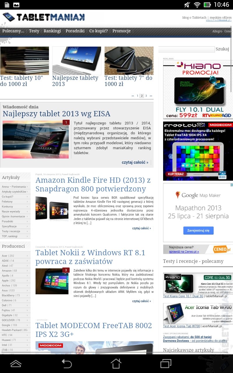 Tani, ciekawy, kolorowy, z dobrej jakości wyświetlaczem, ciekawym aparatem z autofocusem, slotem na karty microSD i niezłym procesorem. Czego jeszcze można wymagać od sprzętu za 700 złotych, nawet w zestawieniu z Nexusem 7 pierwszej generacji?