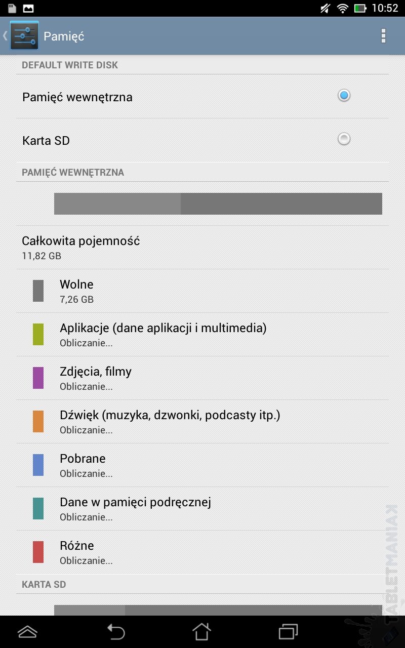 Po podpięciu do portu USB, ASUS MeMO Pad HD7 rozpoznawany jest jako urządzenie multimedialne MTP; nie możemy natomiast wymusić na nim pracy w trybie pamięci masowej.
