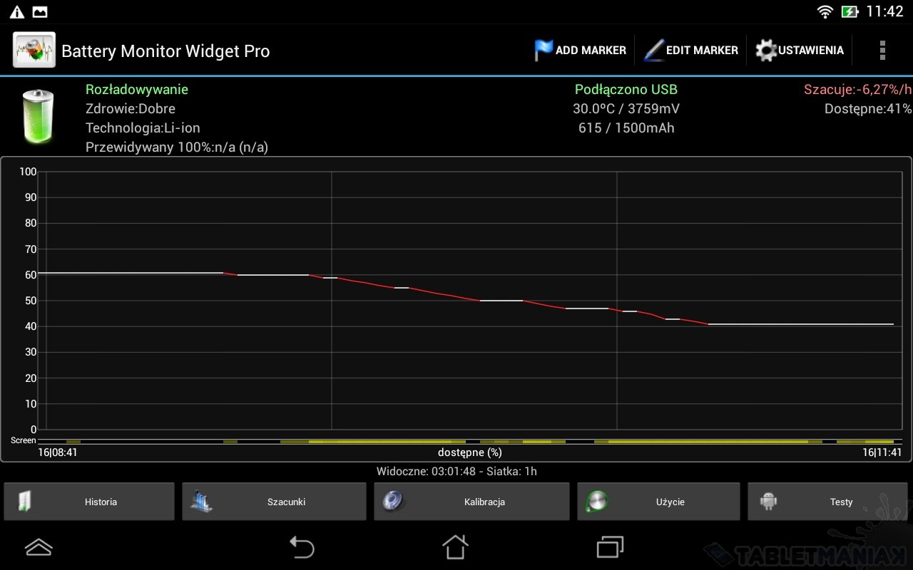 ASUS MeMO Pad HD7 - ostatni fragment wykresu powstał po podłączeniu do komputerowego gniazda USB / fot. tabletManiaK.pl