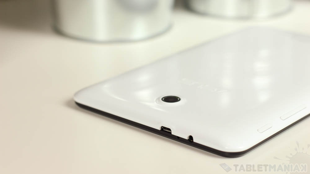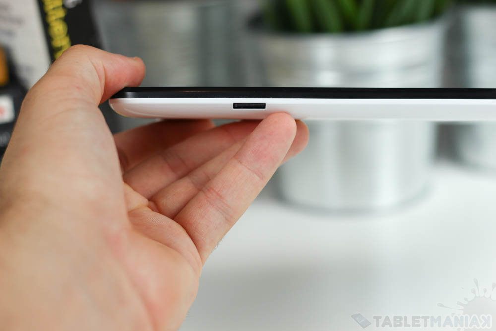 Na rozmieszczenie portów nie można narzekać; gniazdo Micro USB wsadzono na grzbiet, podobnie jak port słuchawkowy. Przyciski są dwa – jeden do blokowania ekranu i wyłączania MeMO Pada, drugi multimedialny, dwufunkcyjny. Ostatnia rzecz to slot na karty microSD, wyprowadzony na prawej ściance tabletu.