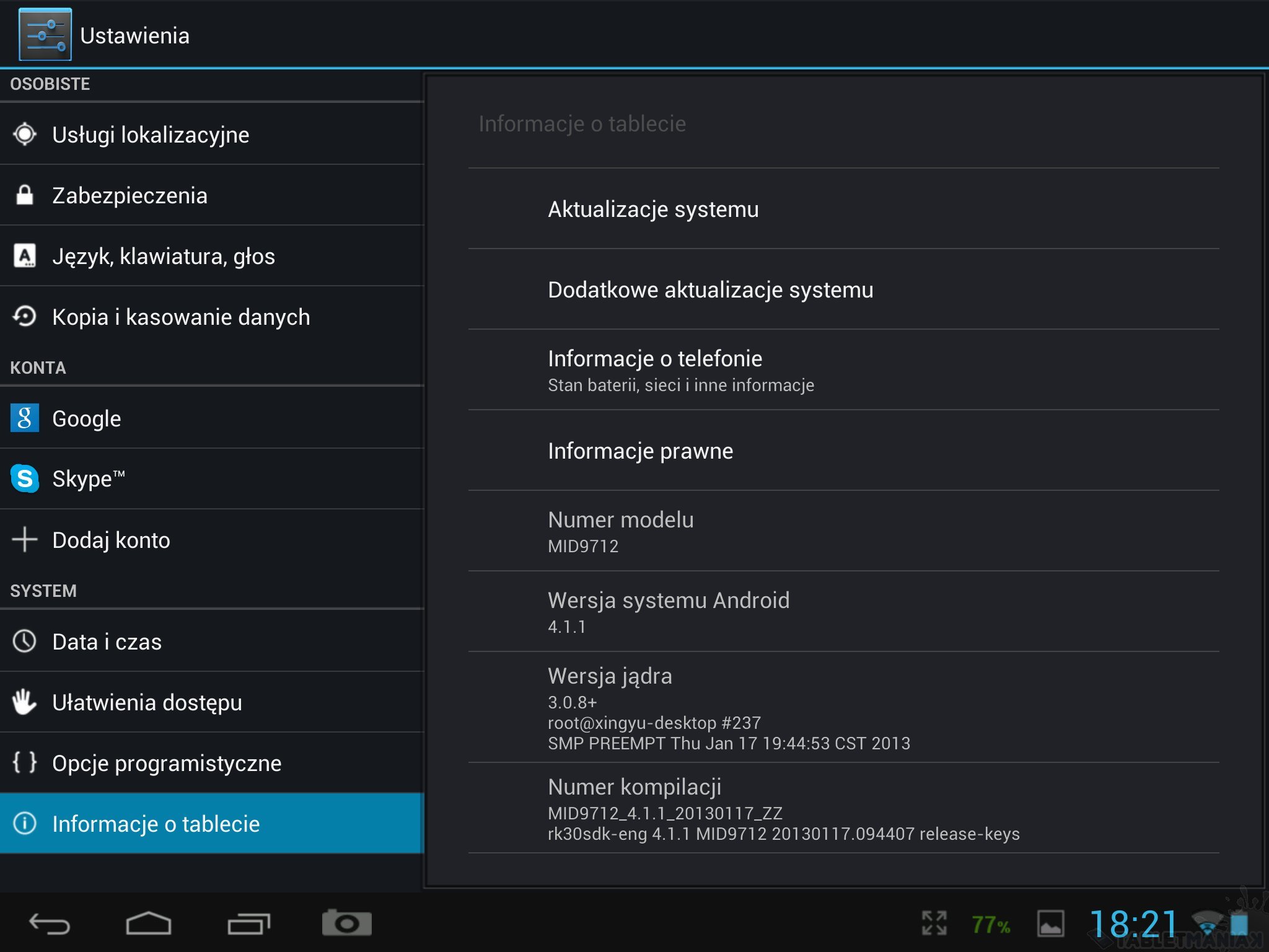 Brakuje natomiast aktualizacji do Androida 4.2 Jelly Bean – miejmy nadzieję, że producent takową przyszykuje w najbliższej przyszłości. Jak na razie, tablet działa pod kontrolą niezmodyfikowanego systemu w wersji 4.1.