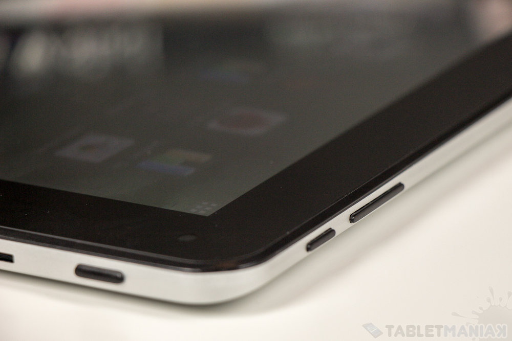 Na 9,7-calowym wyświetlaczu widoczny jest efekt „jacuzzi”, będący domeną zdecydowanej większości nisko- i średniobudżetowych konstrukcji. Od strony wyglądu tablet nie wyróżnia się niczym szczególnym. Czarna ramka okalająca ekran, wyciągnięte na wierzch przyciski (blokady, Home i multimedialny) czy obecność sloty na karty microSD, portu USB, gniazda zasilacza, mikrofonu i wejścia słuchawkowego spotykane są też w innych produktach. Omega nie trzeszczy pod naciskiem, choć jeśli użyjemy sporej siły, może się delikatnie ugiąć; nie ma to wpływu na faktyczną pracę i komfort korzystania z urządzenia.