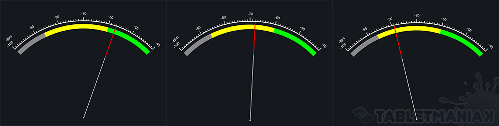 Na początku zazwyczaj omawiamy Wi-Fi, więc i tym razem na nim się skupimy. W całości aluminiowa Omega może sprawiać wrażenie, jakoby problemy z zasięgiem były w niej nie tylko możliwe, ale wręcz oczekiwane. Nic bardziej mylnego – moduł sieci bezprzewodowej działa jak najbardziej poprawnie, nie rozłącza się z routerem, samo zalogowanie też nie trwa długo. Utrzymywanie zasięgu ilustrujemy zrzutami z Wi-Fi Analyzera w różnych scenariuszach.
