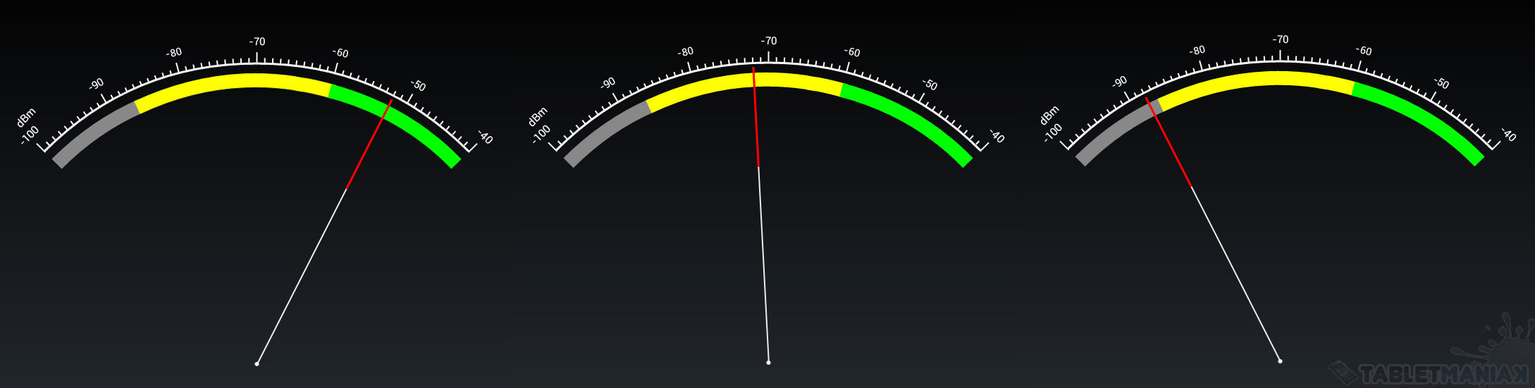 Wi-Fi w myTabie funkcjonuje dobrze; nie jest może najbardziej czułe, natomiast potrafi trzymać zasięg tam, gdzie inne tablety ustępują. Niżej znajdziecie wskaźniki z Wi-Fi Analyzera – test przeprowadziliśmy odpowiednio: