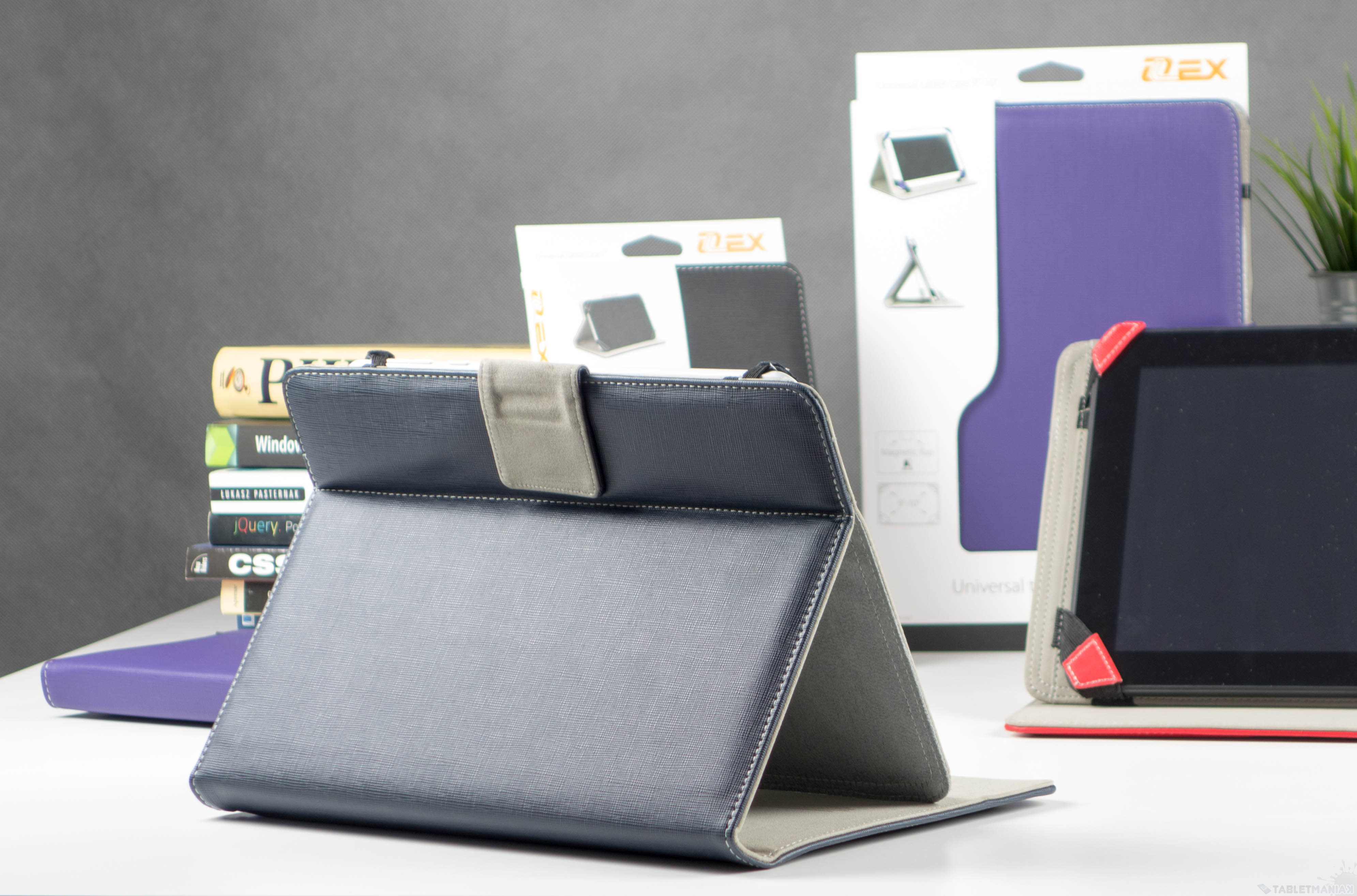 Mając przed sobą płaskie podłoże, najchętniej używalibyśmy tabletu kładąc go na nim. Nie zawsze będzie to jednak wygodne, najprawdopodobniej będziemy doświadczać problemów z kątami widzenia, a i film przyjemniej było by oglądać, gdyby ekran był na wprost. O tym też pomyśleli ludzie z D-Lex i postanowili temu zaradzić. Etui posiadają więc opcję złożenia ich w wygodny stojak. Poliuretanowe wnętrze powstrzymuje ześlizgnięcie się tabletu umieszczonego w pozycji pionowej; dla pewności są tu też specjalne rowki, w których usadowimy urządzenie.