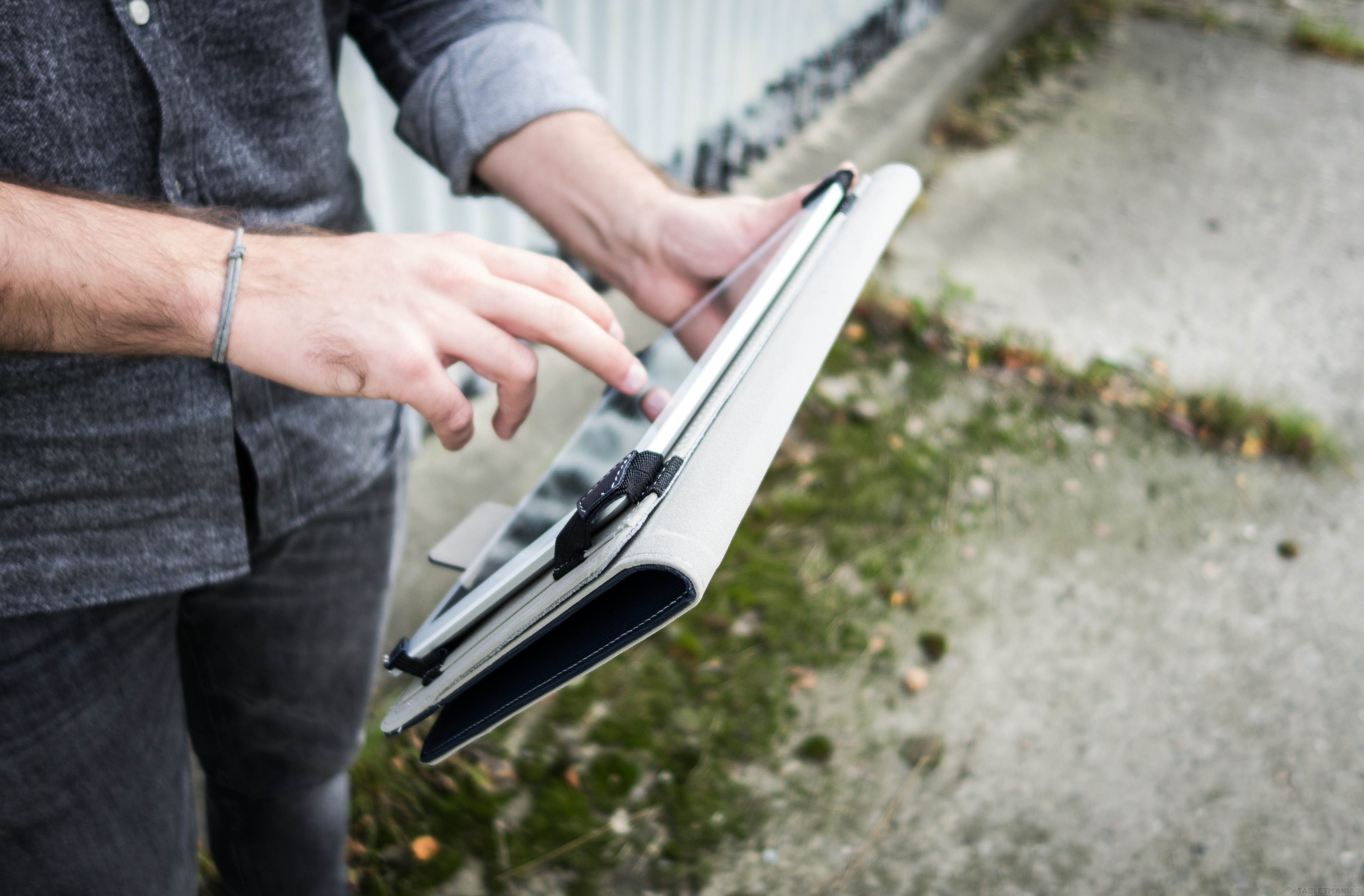 Podoba mi się też fakt, że nic nie jest tutaj z przypadku – forma idzie w parze z funkcją. Chodzi oczywiście o taki detal, jak zaczep na magnes, który przy zamkniętym etui dba o to, by się przypadkiem nie otworzyło, ale kiedy już je otworzymy nie przeszkadza jak można by zakładać. Z tyłu jest taki sam magnes jak z przodu, a więc przy otwartym etui, czy to w pozycji pionowej czy poziomej, po prostu odchylamy go do tyłu i tam już zostaje.