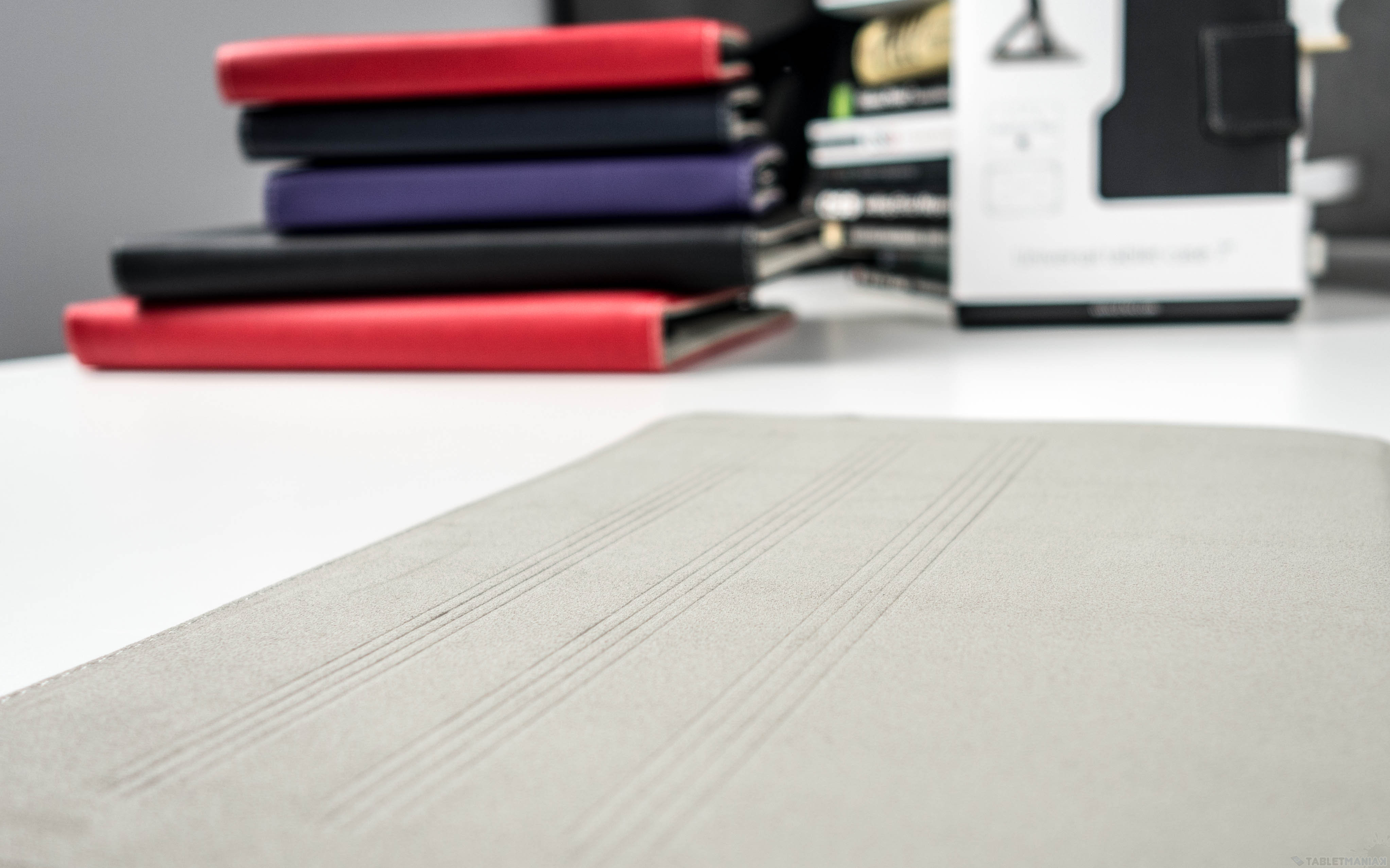 Wnętrze wyłożono sztuczną skórą zwaną Yangbuck co tłumaczy wysokie tarcie materiału – położone tam przedmioty mają dużo mniejszy poślizg, a znajduje to zastosowanie w funkcji, o której dalej w tekście. Utrzymanie szarej kolorystyki wewnątrz etui wychodzi na dobre całej kompozycji – w połączeniu z przeszyciami w podobnym kolorze wygląda to naprawdę fajnie i pasuje w każdym zestawieniu kolorystycznym.