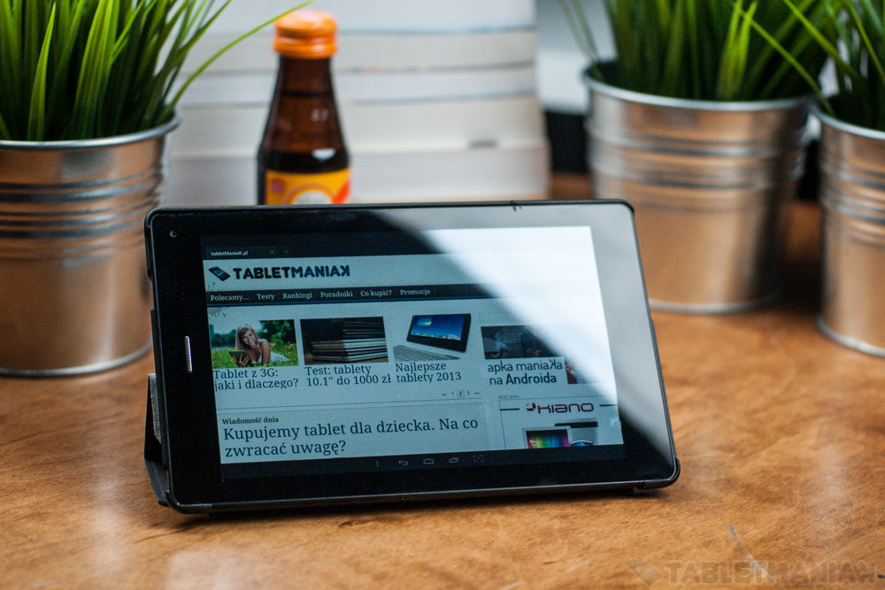 7-calowy wyświetlacz o rozdzielczości 1280 x 800 pikseli (216 PPI) jest w stanie zapewnić całkiem ostry i czytelny obraz, choć nie może być on porównywany z ekranami z najwyższej półki. Za ok. 600 złotych nie sposób jednak wymagać od tego sprzętu więcej: to w końcu panel IPS oferujący naprawdę dobre kąty widzenia. Nawet przy rzucie ukośnym nie widać tu drastycznej zmiany kolorów czy kontrastu, co wcale tak często nie zdarza się w niskobudżetowych produktach. Odwzorowanie barw i balans bieli można uznać za naturalne; nie odchodzą ani w stronę nadmiernej zieleni, ani zbyt ciepłej temperatury barwowej.