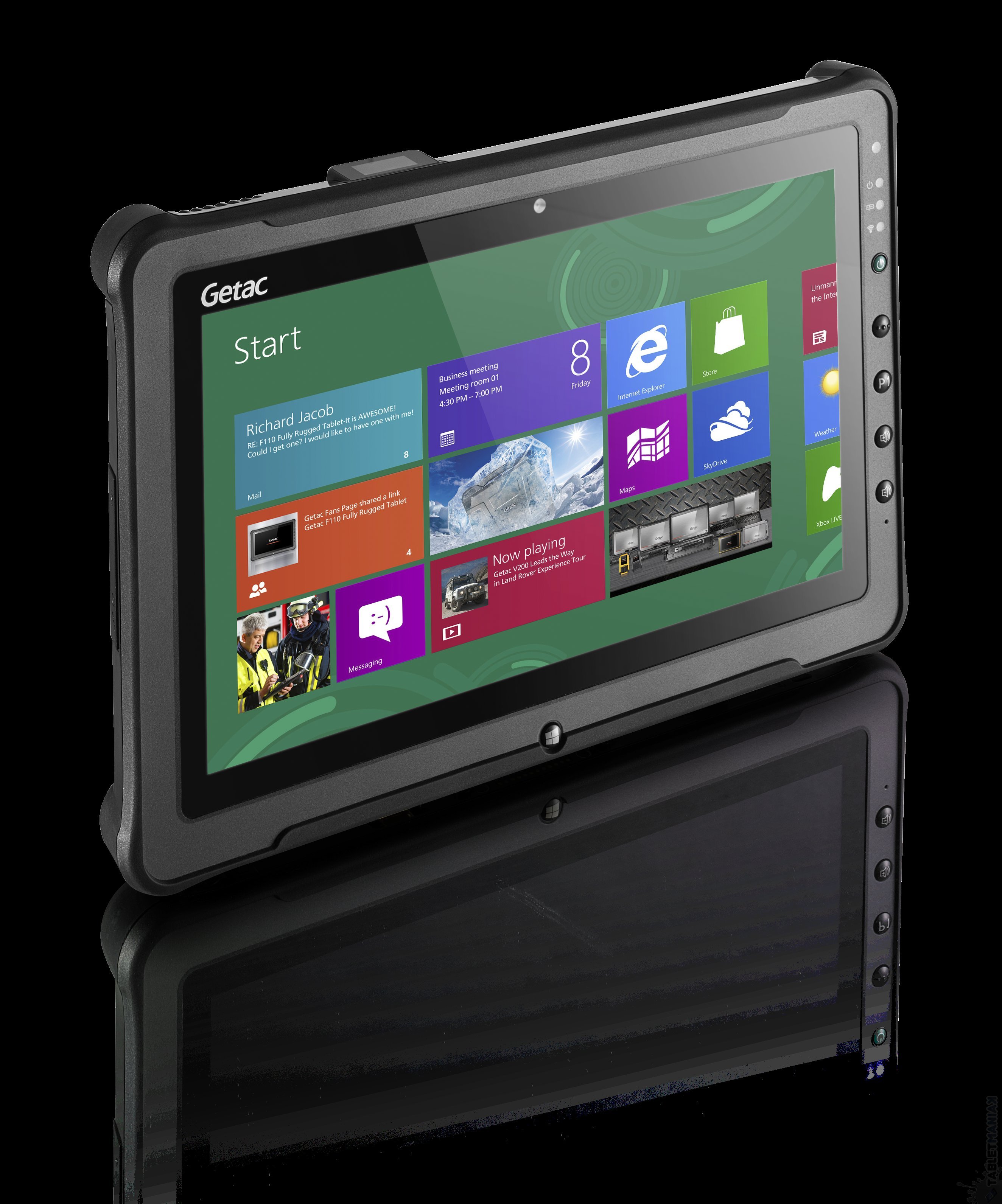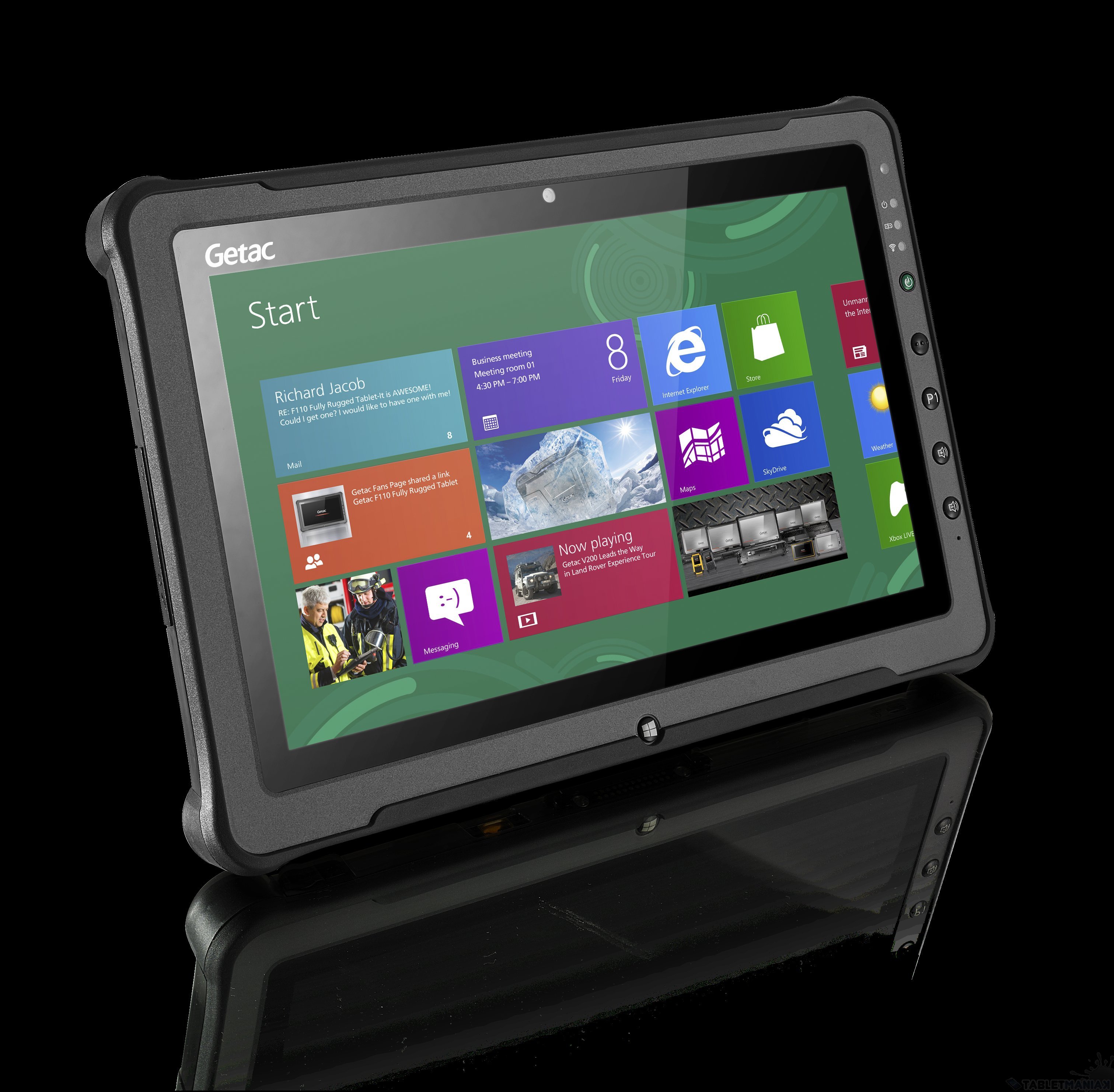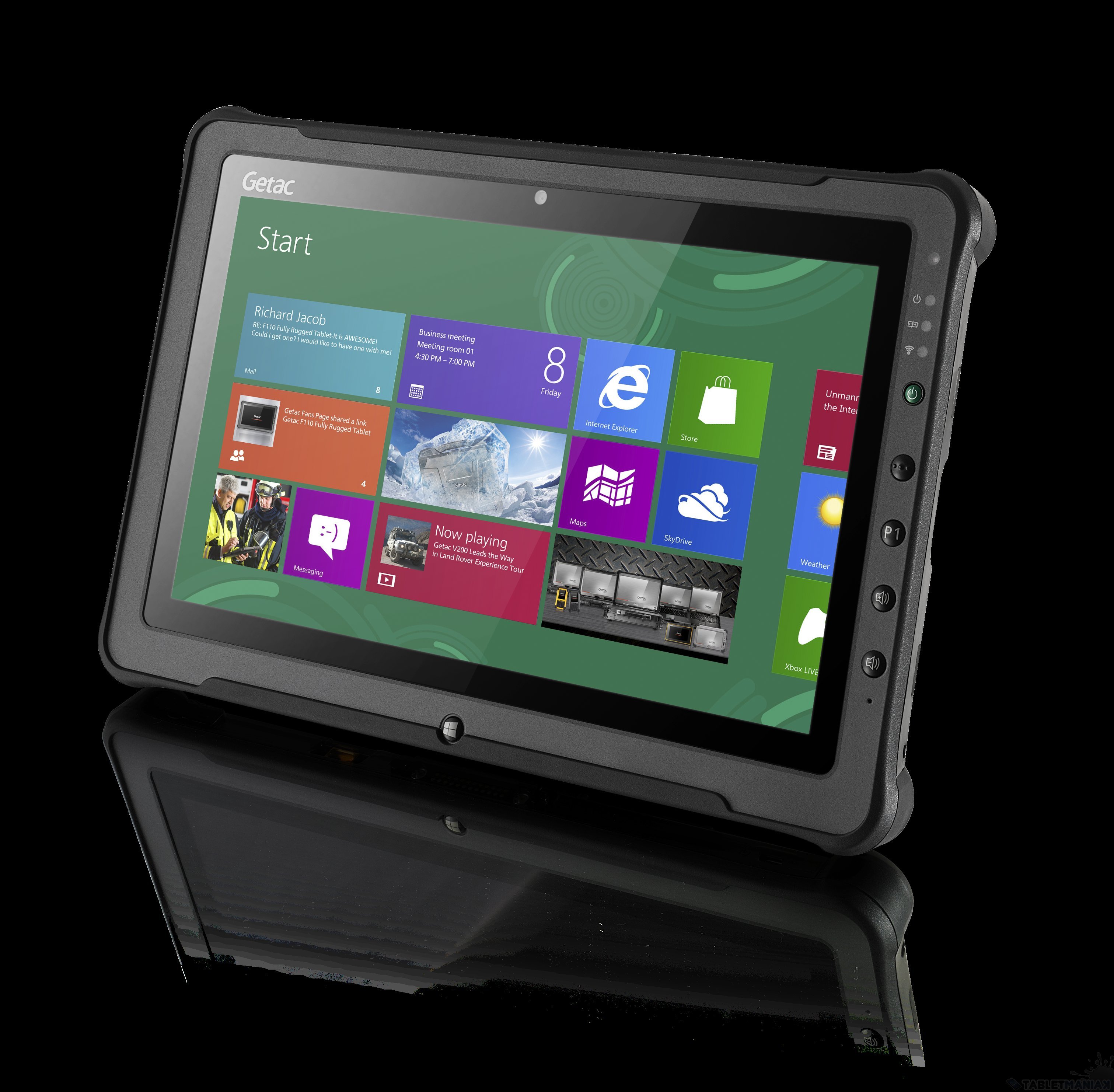 Getac F110 wyposażony został w wydajny procesor Intel Core 4 generacji, współpracujący z układem graficznym HD Graphics 4000 i nawet 8 GB pamięci RAM. Całość działa pod kontrolą Windows 8.1; dane magazynowane są na dyskach SSD o pojemności 128 lub 256 gigabajtów. Tablet waży 1.4 kilograma przy wymiarach 312 x 207 x 24.5 milimetra.