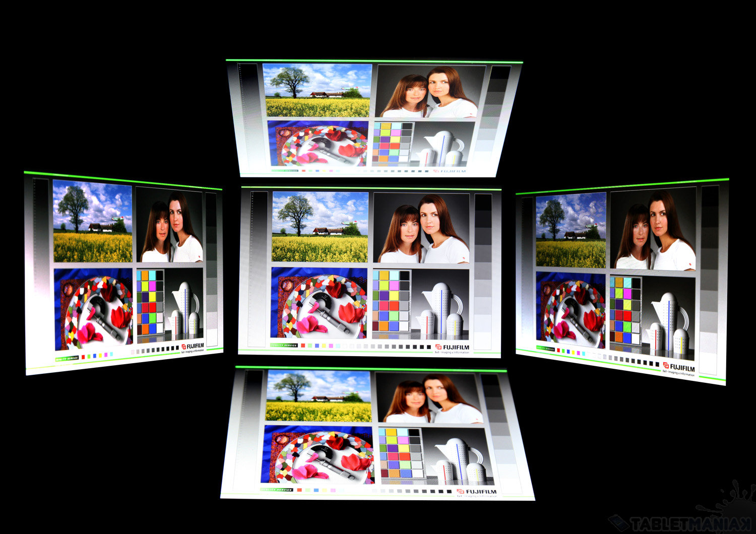 Także kąty widzenia nie pozostawiają wiele do życzenia. Obraz jest dobrze widoczny przy odchyleniu w każdą stronę a zmiana kolorów jest niemal niewidoczna. Maksymalna jasność wynosi 330 cd/m2, co jest wartością przeciętną, ale też wystarczającą w większości wypadków (jedynie praca przy mocnym świetle słonecznym może być utrudniona).