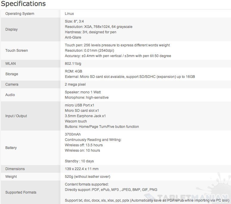 Asus Eee Note EA800 obsługuje formaty takie jak PDF, ePub, MP3, JPEG, BMP, GIF, PNG, txt, doc, docx, xls, xlsx, ppt oraz pptx. Nie wiadomo ile dokładnie będzie kosztował, lecz premiera szykowana jest na 2011 rok.