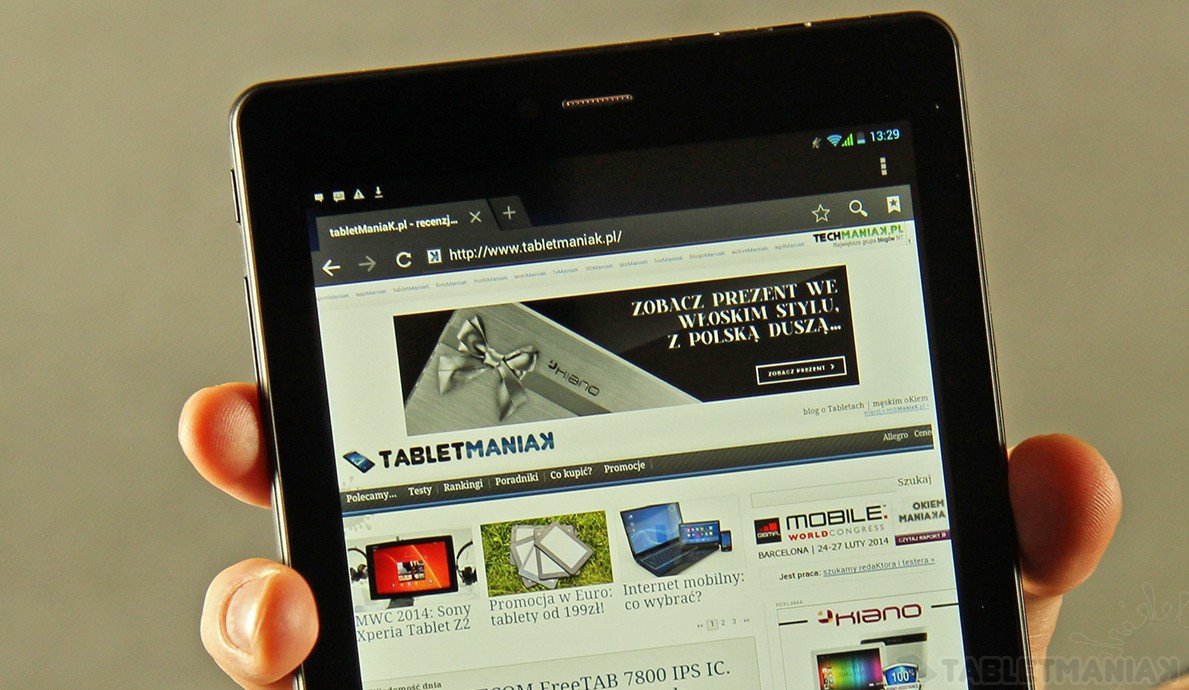 Wyświetlacz Evo to standard wśród 7-calowych tabletów ze średniej półki. Rozdzielczość 1280 x 800 pikseli daje zagęszczenie punktów wynoszące 216 na cal. W praktyce jest to ilość wystarczająca, aby komfortowo przeglądać strony internetowe i czytać książki. Daleko tej matrycy do żyletki z Nexusa ale pamiętajmy, że mamy do czynienia z urządzeniem sporo tańszym. Kolory prezentowane na ekranie wyglądają bardzo ładnie, są dobrze nasycone a dzięki zastosowaniu technologii IPS nie ulegają znacznym zniekształceniom przy odchyleniu.