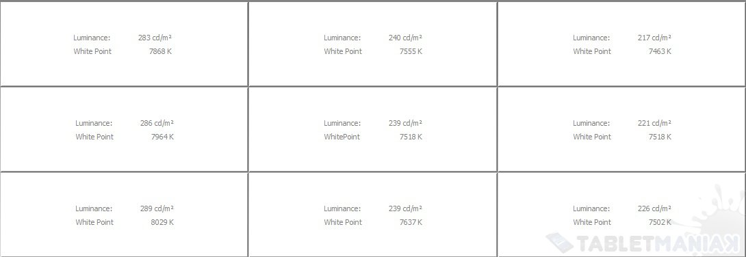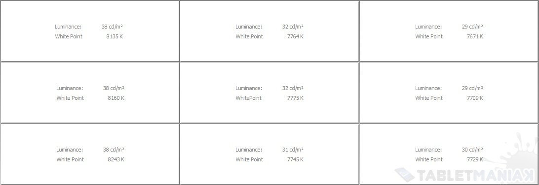 Nieciekawie za to wygląda sprawa z podświetleniem wyświetlacza – jasność maksymalna (239 cd/m2) jest nieco za niska, ciężko więc się będzie korzystało z urządzenia przy silnym świetle słonecznym. Jasność minimalna (32 cd/m2) mogłaby być za to być niższa. Nierównomierność podświetlenia wynosi aż 21%, podczas gdy inne tablety w tym segmencie cenowym zazwyczaj nie przekraczają wartości 15-18 procent.