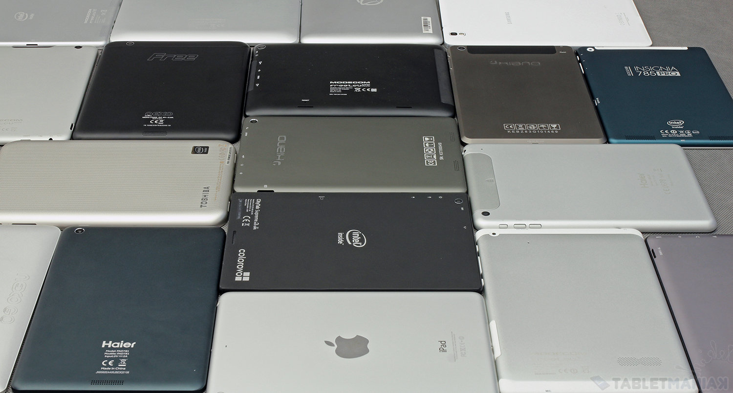 Druga połowa roku 2013 to biznesowe „uwolnienie” ekranów pierwszego iPada Mini, czego efektem był gwałtowny wysyp tanich, chińskich tabletów z wyświetlaczem o przekątnej 7,85″, pracujących pod kontrolą systemu Google. To również poważna zmiana w filozofii projektowania obudów. Miejsce mniej lub bardziej autorskich projektów zajęła moda na kopiowanie Apple – nie tylko w zakresie frontu urządzeń (co jest oczywiste z uwagi na specyfikę ekranu), ale także w kontekście budowania tylnego panelu, obramowań, a nawet rozmieszczenia przycisków. Trend ten dodatkowo wzmocnił fakt, że nierzadko te same wzorcowe modele produkowane były pod różnymi markami – wystarczy zerknąć na poniższą grafikę, aby się o tym przekonać.
