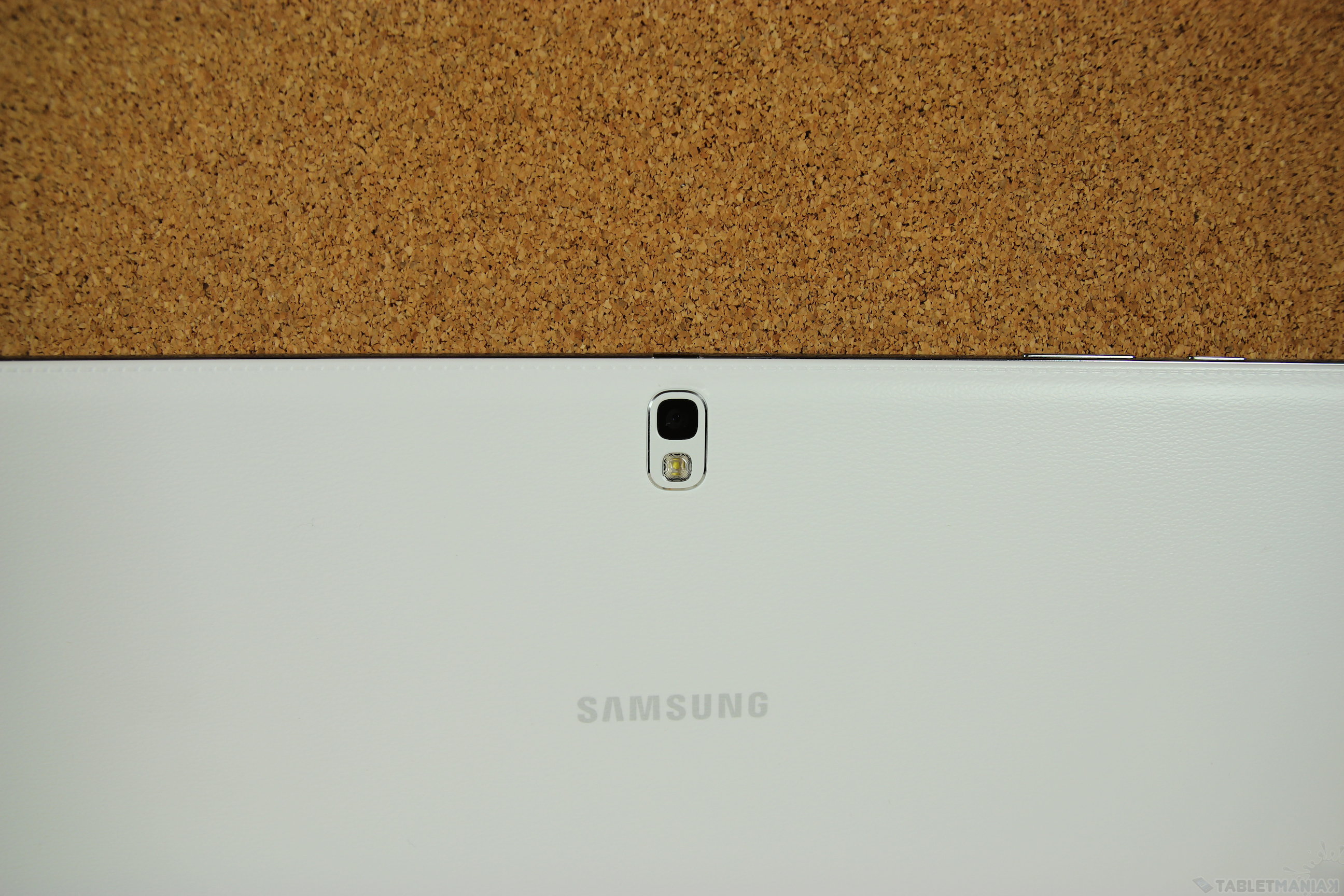 Na prawej krawędzi bocznej urządzenia odnajdziemy gniazdo karty microSD oraz microSIM, a także jeden z głośników stereo (są rozlokowane po obu stronach tabletu) i schowek na rysik S Pen, o którym napiszę obszerniej w akapicie traktującym o wyposażeniu tabletu. Na tej samej krawędzi odnajdziemy również nieco nietypowe złącze wielofunkcyjne, które posłuży do ładowania tabletu oraz do podłączenia możliwych akcesoriów. Dolna krawędź pozostała zupełnie wolna od jakichkolwiek elementów. Na górnej ulokowano guzik wybudzania/usypiania, regulacji głośności, port podczerwieni oraz mikrofon. Wyjście audio znalazło się na lewej krawędzi urządzenia. Tylna ścianka odznacza się dużym minimalizmem. Umieszczono tu aparat z lampą błyskową oraz logo producenta z oznaczeniami produktu.