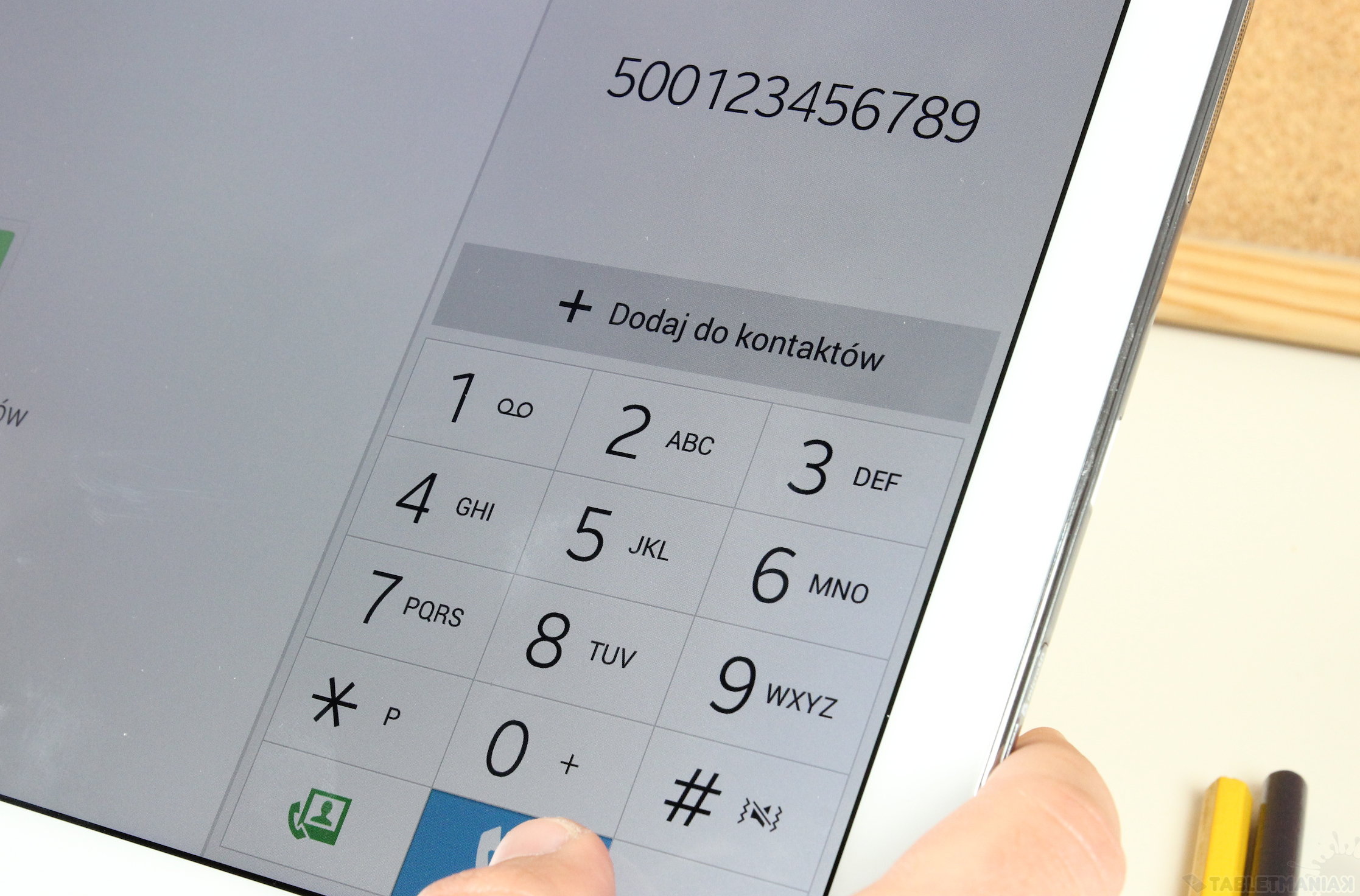 Nie, to nie żart. Jak na w pełni profesjonalny tablet przystało, w Galaxy Note Pro 12,2″ nie mogło zabraknąć funkcji telefonu. Producent najwyraźniej uznał, że skoro zamontowano już moduł łączności komórkowej, to czemu nie dodać do tego telefonu. Oczywiście po nikim się nie spodziewam, aby próbował przykładać tablet do ucha. Rozmowy głosowe można za to wykonywać przy pomocy zestawu słuchawkowego (brakuje takowego w zestawie). Ponieważ w tablecie wbudowano dobre głośniki, urządzenie może również posłużyć jako telefon do rozmów w czasie wieloosobowych spotkań i telekonferencji.
