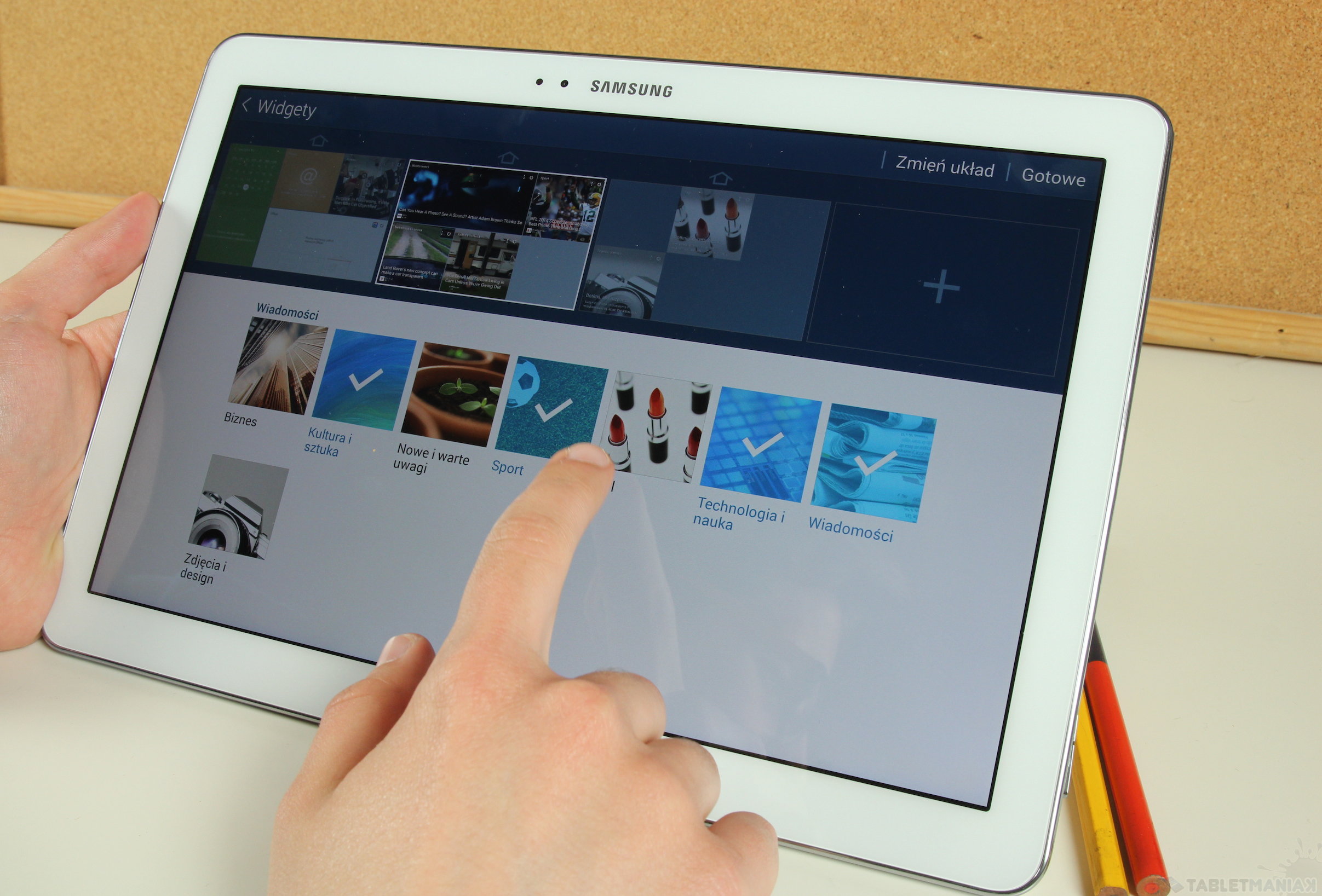 W ustawieniach znajdziemy kilka dodatkowych opcji związanych z rysikiem, choćby takich jak wyświetlanie kółeczka w charakterze kursora, kiedy krążymy nim ponad ekranem, Air view czyli wyświetlanie dodatkowych informacji po przytrzymaniu końcówki piórka przy wyświetlaczu. Jest tego naprawdę mnóstwo, a najważniejsze jest to, że wszystko świetnie działa. Naprawdę ciężko się przestawić na korzystanie z tabletu bez rysika. Pozwala on precyzyjniej klikać w hiperłącza, zaznaczać tekst czy zapisywać komentarze na wykonanych zrzutach ekranu.