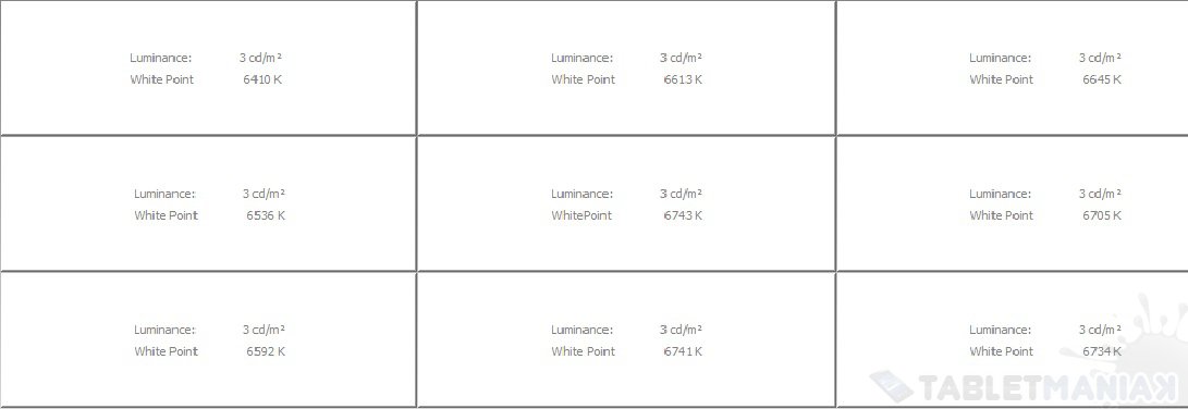 Dobrze o monitorze świadczą pomiary iluminacji. W teście maksymalnego podświetlenia matrycy udało się uzyskać wartość równą 402 cd/m2, która spada do zaledwie 3 cd/m2 przy maksymalnym przyciemnieniu ekranu. Jednocześnie równomierność podświetlenia wynosi 7,9%. Note Pro 12,2″ bije w tej kwestii swojego mniejszego kuzyna z linii Tab Pro. Podobne pomiary zarejestrowano podczas testu iPada Air, którego rozpiętość podświetlenia sięga od 10 do 416 cd/m2. Współczynnik równomierności podświetlenia matrycy w urządzeniu Apple jest jest nieco gorszy, bo sięga 10%.