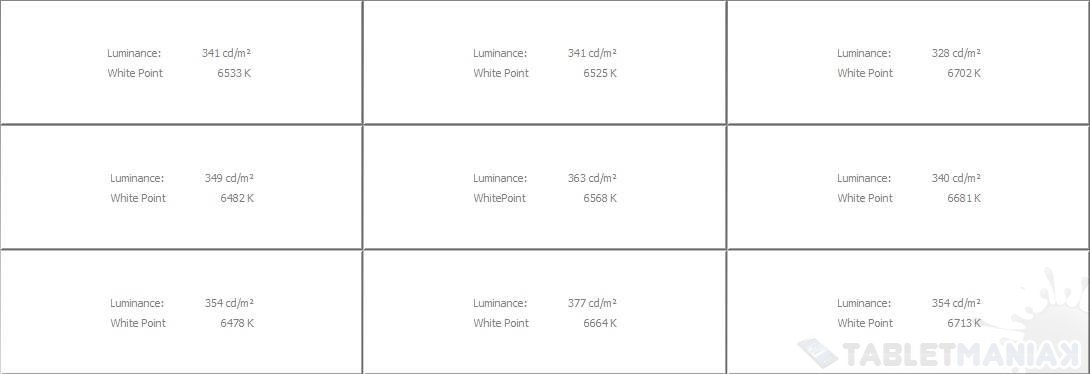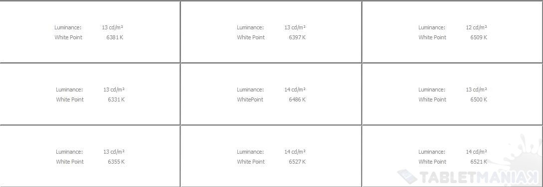 Maksymalna jasność ekranu to 363 cd/m2. Nie jest to może wyjątkowo wyśrubowana wartość, ale z tabletu będzie można korzystać także w świetle słonecznym, choć z pewnymi utrudnieniami. Cieszy natomiast bardzo niska wartość jasności minimalnej (14 cd/m2), dzięki czemu bez męczenia oczu będziemy mogli grać czy przeglądać internet w całkowitej ciemności, na przykład przed snem.