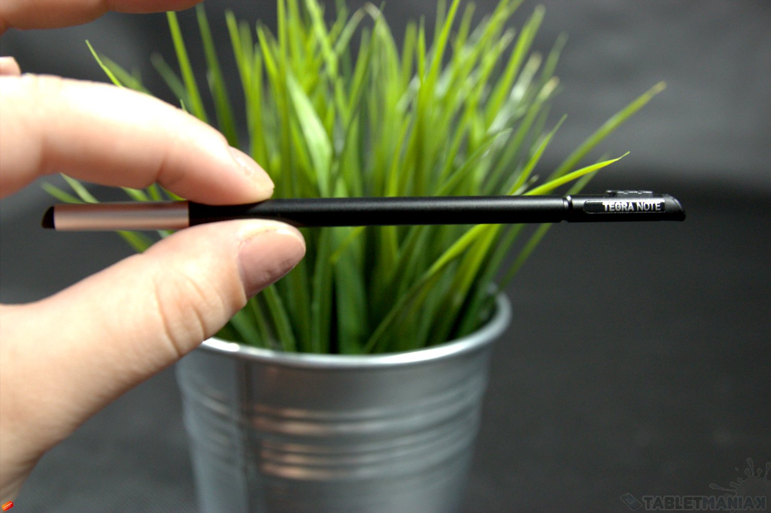 Do tabletu dołączony został nietypowy stylus, który na co dzień kryje się w dolnym panelu tabletu. Rysik na pierwszy rzut oka nie wyróżnia się niczym wyjątkowym, posiada jednakże kilka ciekawych funkcji – zwłaszcza w połączeniu z aplikacjami zainstalowanymi na Tegrze. Z jednej strony możemy zauważyć ściętą pod dosyć ostrym kątem gumową końcówkę, podczas gdy z drugiej – logo Tegra oraz ścięte pod trochę mniejszym kątem, grubsze zakończenie. To, jak możemy wykorzystać stylusa łatwiej zaprezentować na wideorecenzji, do której zobaczenia zapraszam powyżej – poniżej zaś krótkie zestawienie czynności, podczas których rysik bywa przydatny: