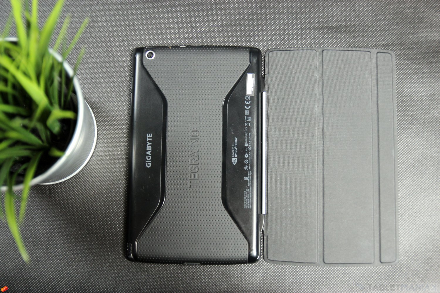 Na górnej krawędzi tabletu znajdziemy porty microUSB i microHDMI, gniazdo minijack oraz wyłącznik. Prawy panel zajęty został przez przyciski regulacji głośności (jak na mój gust zbyt słabo wystające) i slot na kartę microSD. Lewy bok urządzenia zarezerwowano na mocowanie opcjonalnego etui, które można dokupić do tabletu. Jako, że jest to sprzęt przeznaczony przede wszystkim dla graczy, kupno pokrowca ma sens – tym bardziej, że przy jego pomocy możemy łatwo postawić tablet, a później już wystarczy tylko podłączyć pada i rozkoszować się rozgrywką siedząc nawet kilka metrów dalej (jeśli mamy bezprzewodowego pada rzecz jasna). Oprócz tego etui posłuży także jako ochrona przed porysowaniem wyświetlacza.