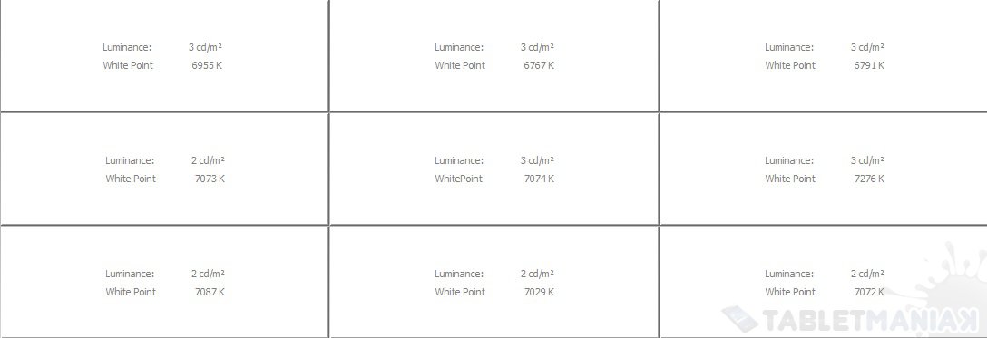 Można mieć natomiast pewne zastrzeżenia co do jasności podświetlenia. Jej maksymalna wartość wynosi zaledwie 255 cd/m2 co odczujemy przede wszystkim próbując używać tabletu na zewnątrz, w słoneczny dzień. Na ekranie dużo wyraźniej widzimy wtedy swoje odbicie niż to co jest wyświetlane. Kwestię regulacji jasności ratuje odrobinę jej dolna granica, która wynosi 3 cd/m2 – to wyjątkowo niska wartość, którą docenimy używając sprzętu w całkowitej ciemności.