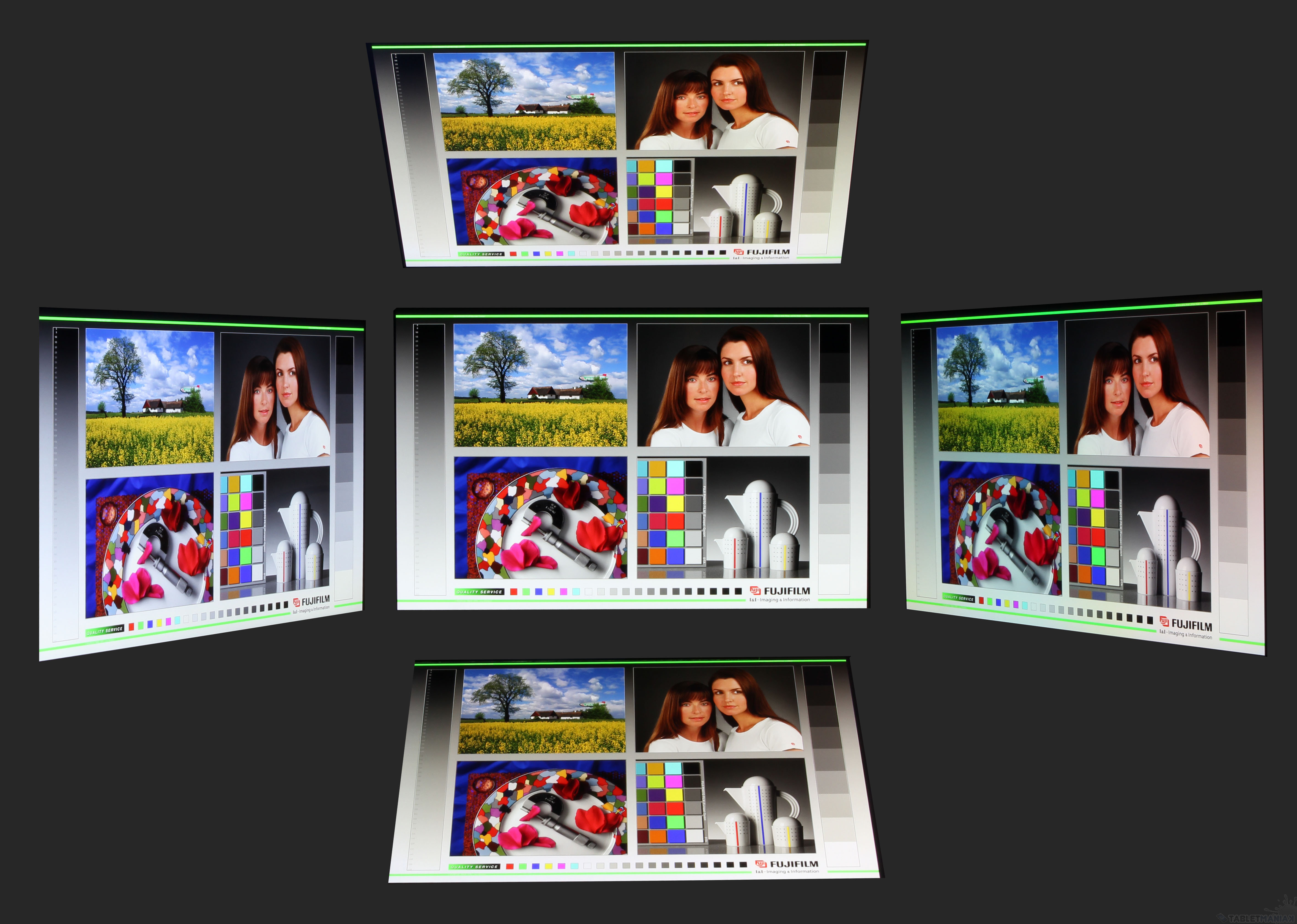 Istotą technologii IPS są szerokie kąty widzenia oraz dobre nasycenie barw. Tak jest i w przypadku testowanego modelu – jeśli będziemy chcieli pracować na czymś w większym gronie, matryca pozwoli na konsumpcję treści nawet przy spoglądaniu na ekran pod dużym kątem. Panel obsługuje do 10 punktów dotyku, a nierównomierność podświetlenia wynosi 11%