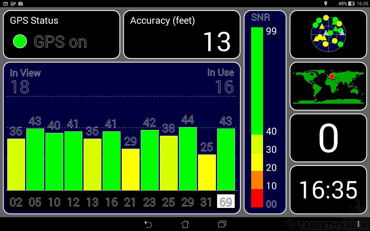 Karta bezprzewodowa zgodna ze standardem 802.11 a/b/g/n pracuje w dwóch zakresach (2.4 i 5 GHz). Nasze testy pokazały, że spadek zasięgu w ostatnim scenariuszu (inna kondygnacja niż router, dużo ścian na przeszkodzie) może czasami uniemożliwiać korzystanie z Internetu. Musimy więc mieć na względzie odległość od nadajnika, jeśli chcemy korzystać z tabletu w odległych zakątkach domostwa. Moduł GPS znajduje informację o położeniu tabletu w ciągu 2-3 sekund z dokładnością do 13 stóp. Świetny wynik, zwłaszcza jeśli chodzi o szybkość znajdywania nadajników.