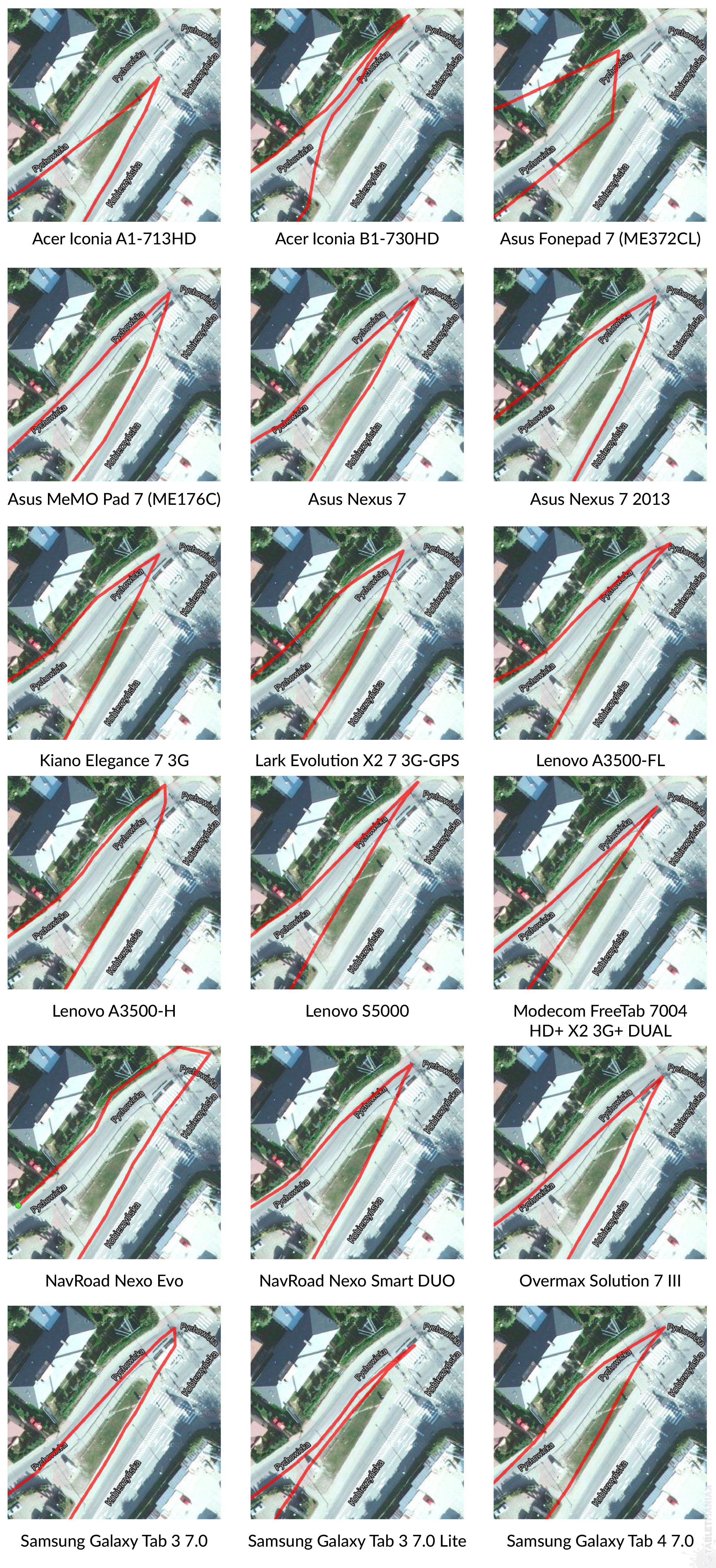 Sprawdziliśmy dokładność modułów GPS, co wydawało się słusznym pomysłem z uwagi na mobilny charakter 7-calowych urządzeń. W końcu w oczach wielu tabletManiaKów stanowią one świetną alternatywę dla nawigacji samochodowych i smartfonów. Łatwo z nimi spacerować i nie zajmą dużo miejsca w samochodzie. Nasz test przeprowadziliśmy na tym samym obszarze i przy tych samych warunkach atmosferycznych (piękny, słoneczny dzień). Każdy tablet był podłączony do tego samego hot-spotu, a zapis ścieżki rejestrowany był przez przez ten sam program. Z testu zostały wykluczone modele nie posiadające stosownego wyposażenia, a także Gigabyte Tegra Note (który pomimo usilnych prób nie mógł znaleźć zasięgu) i Kruger&Matz KM0794-GPS (nie można było zainstalować na nim potrzebnego oprogramowania).