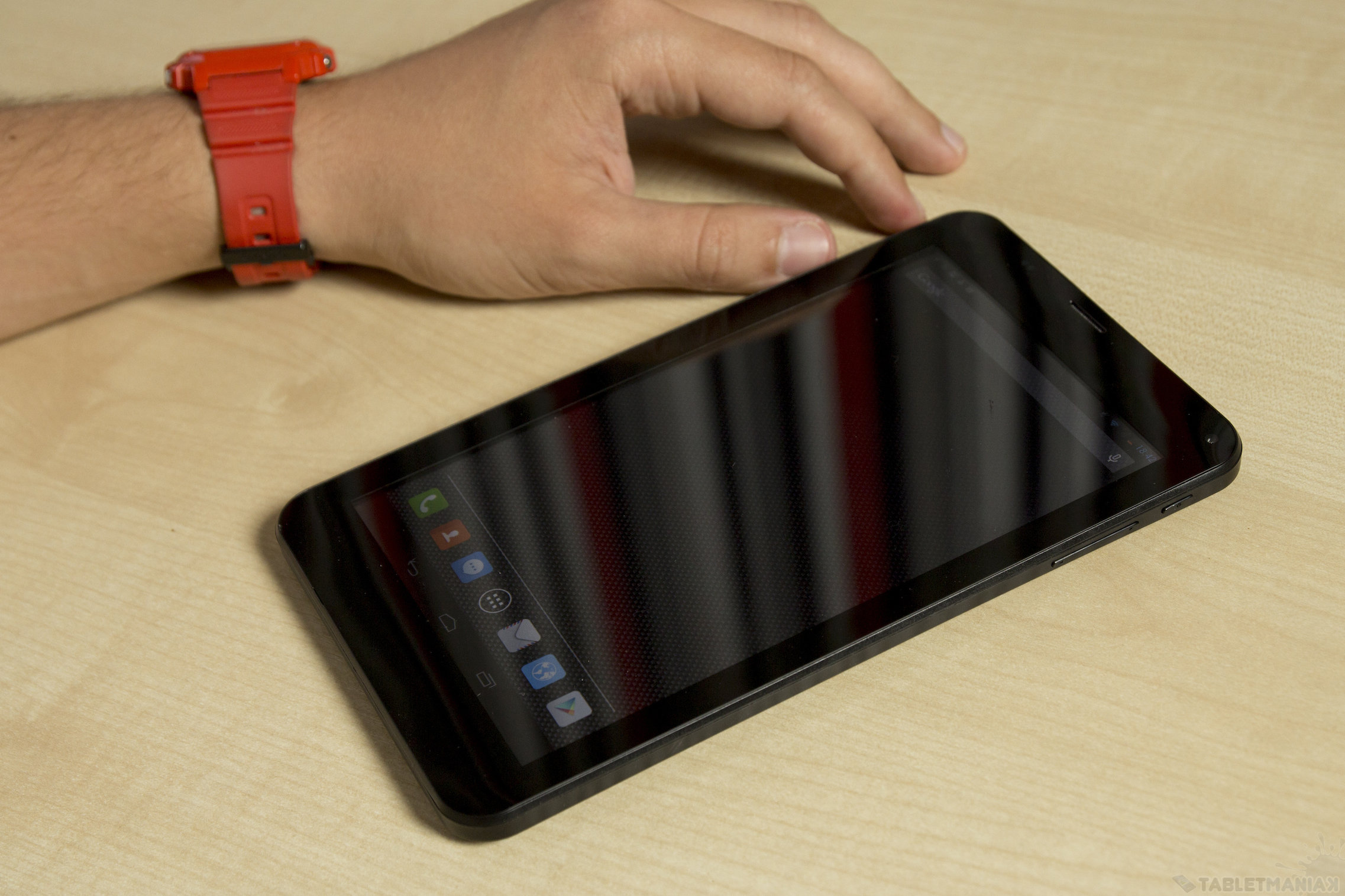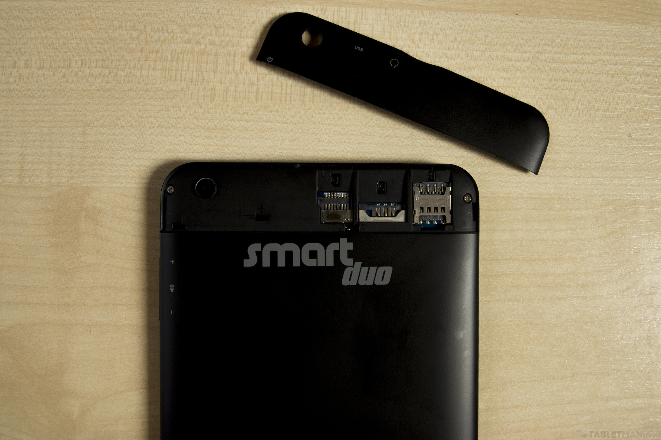 Jakość wykonania jest bardzo dobra – ciężko tu mówić o skrzypiącej konstrukcji, a jedynym mankamentem obudowy jest uginająca się powłoka ekranu, tworząca plamy na wyświetlaczu. Wyposażenie urządzenia upodabnia go do innych, niskobudżetowych modeli, przy tym w recenzowanym tablecie znajdziemy jeszcze dwa gniazda kart SIM. Schowane za zaślepką, dzielą miejsce z wejściem microSD. Sprzęt posiada dwa aparaty oraz głośnik multimedialny ukryty za estetycznie wykonanymi otworami.
