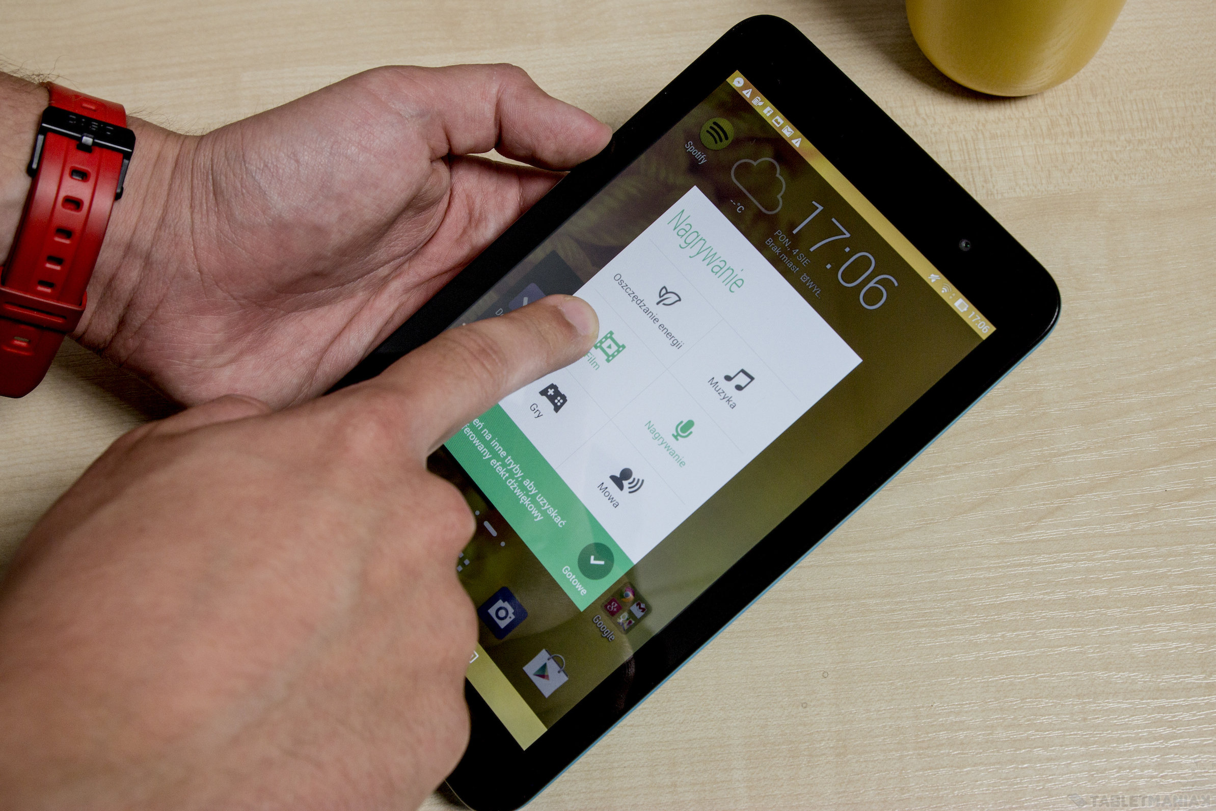 Asphalt 8: Airborne sugeruje rozgrywkę na średnich detalach, ale postanowiłem przekonać się, jak model będzie się sprawować na najwyższym ustawieniu. Podołał, tylko z delikatnymi spowolnieniami i ścinkami na samym początku rozgrywki. Jednostka posiada funkcję zwiększania mocy obliczeniowej grafiki i widać wzrost wydajności. Tablet przy tym silnie się grzeje, dlatego możemy odczuwać lekki dyskomfort. Dead Trigger 2 uruchamia się na średnich detalach i tu zachowuje pełną płynność podczas grania. Na wysokich zachowuje się jak Asphalt 8 – na początku trochę się tnie, by później osiągnąć satysfakcjonującą płynność. W tej kwestii sprzęt zasłużył na mocną czwórkę.
