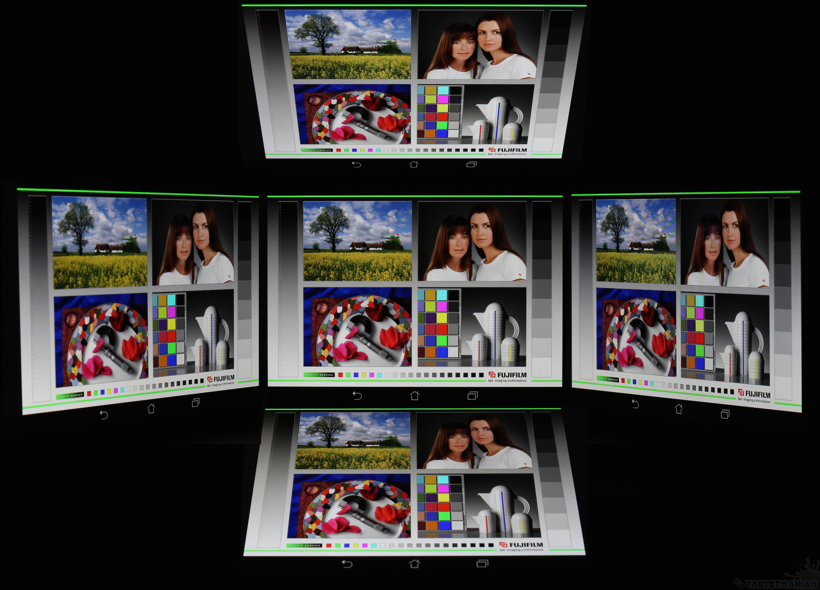 Z racji tego, że matrycę wykonano w technologii IPS, możemy się spodziewać szerokich kątów widzenia oraz dobrego odwzorowania barw, których jakość możemy poprawić programem Splendid (więcej o nim w akapicie o systemie). Niestety, powłoka ekranu szybko zbiera odciski palców, a podświetlenie bywa niewystarczająco silne, aby wygrać z promieniami słonecznymi. W pogodny dzień możemy mieć więc trudności z odczytaniem prezentowanej na wyświetlaczu treści. Nasze pomiary wskazały wartość iluminacji maksymalnej na poziomie 374 cd/m2, a minimalnej – 14 cd/m2. Ta ostatnia jest wskazówką, że z tabletu przyjemnie będzie się korzystało w ciemności. Nierównomierność podświetlenia wynosi 11%, a ekran obsługuje do 10 punktów dotyku.