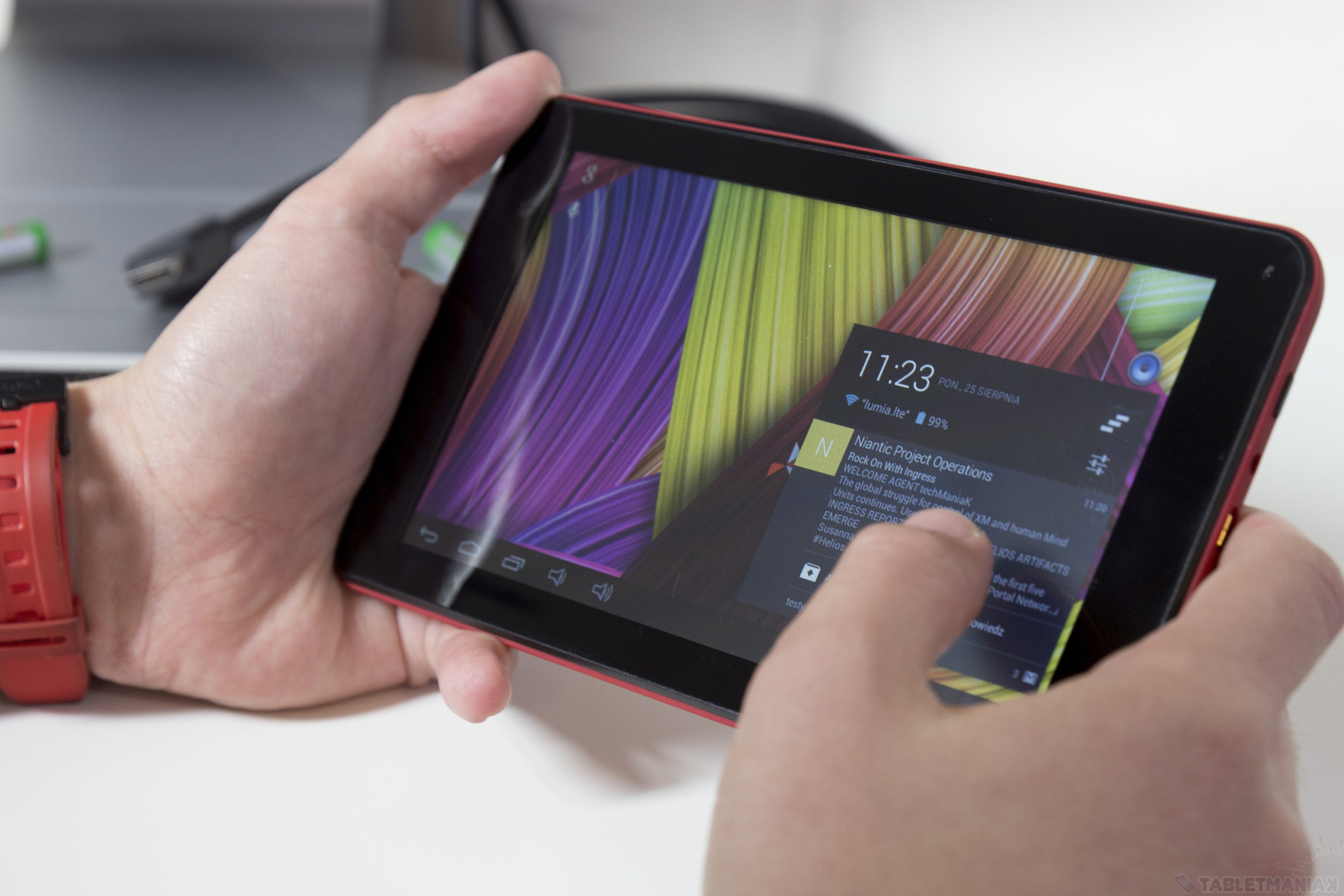 Matryca ucierpiała również pod względem podświetlenia maksymalnego, które według naszych pomiarów nie przekracza wartości 135 cd/m2. Nie wystarczy więc, aby zapewnić czytelność obrazu w słoneczne dni, bo ta jest możliwa dopiero przy osiągach rzędu 350 cd/m2. Podświetlenie minimalne wypada dużo lepiej (choć nadal daleko od ideału) bo tutaj zarejestrowaliśmy wartość równą 22 cd/m2. Matryca obsługuje do 5 punktów dotyku, a nierównomierność podświetlenia wynosi 11%. Mam jeszcze pewne zastrzeżenia co do responsywności matrycy, ponieważ czasami musiałem dwukrotnie dotknąć wyświetlacza, aby tablet wykonał moje polecenie.