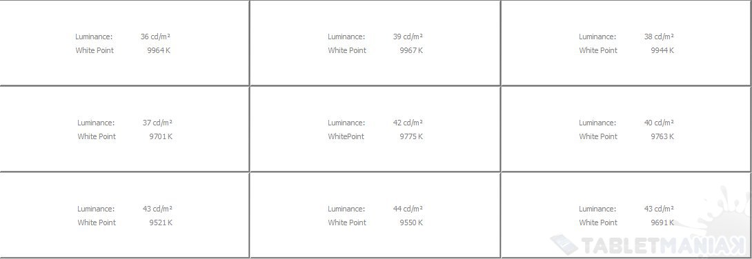 Korzystanie z tabletu uprzykrzy jeszcze słabe podświetlenie matrycy, które przy szczytowej wartości nie przewyższa 248 cd/m2. Dopiero przy wartościach dochodzących do 350 cd/m2 można mówić o czytelności obrazu w promieniach słonecznych. Przy minimalnym ustawieniu jasności, światło bijące od ekranu nie schodzi poniżej 36 cd/m2, a to oznacza, że podczas korzystania z tabletu po ciemku wyświetlacz będzie razić nas w oczy. Nierównomierność podświetlenia wynosi 12%, a ekran obsłuży do 10 punktów dotyku.