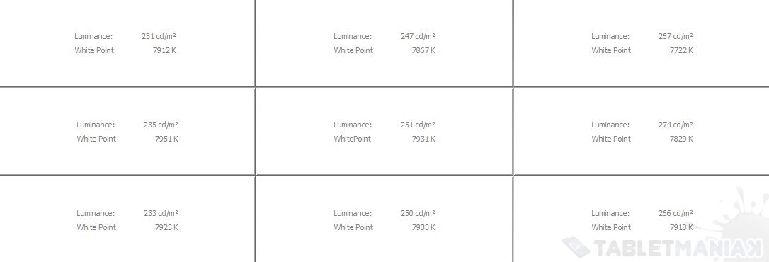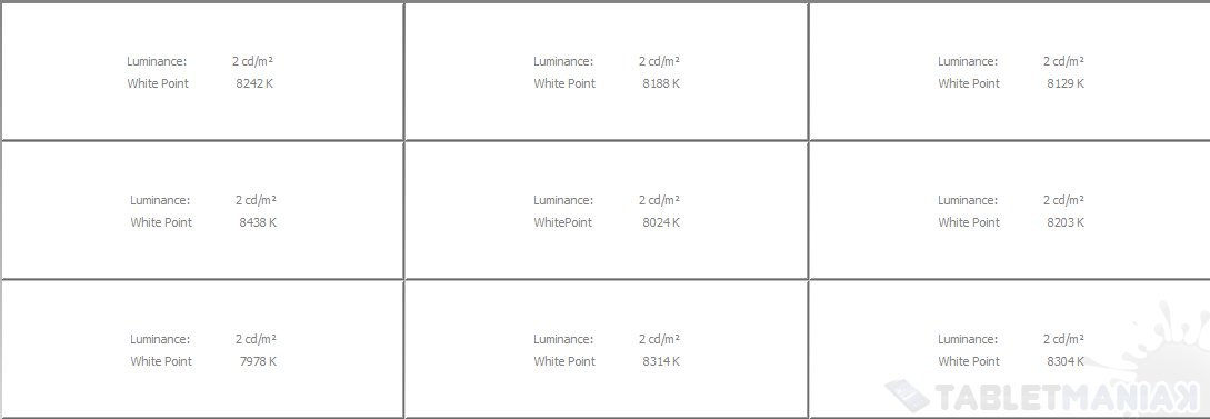 Jeśli przyjrzeć się zarejestrowanym przez nas wartościom szczytowym podświetlenia, można dojść do wniosku, że coś tu nie pasuje. W istocie, nasze pomiary odnotowały niewielką jasność wynoszącą 274 cd/m2 – teoretycznie to niedużo, ale warto pamiętać, że Samsung już od jakiegoś czasu stosuje skuteczną powłokę antyodblaskową, znacząco zwiększającą czytelność ekranu w walce z promieniami słonecznymi. Jeśli więc obawiacie się braku czytelności obrazu w słoneczny dzień, Samsung Galaxy Tab S 8.4 nie ma z tym absolutnie żadnych problemów. Z kolei podświetlenie minimalne schodzi do rekordowo niskiej wartości 2 cd/m2. Brawo!