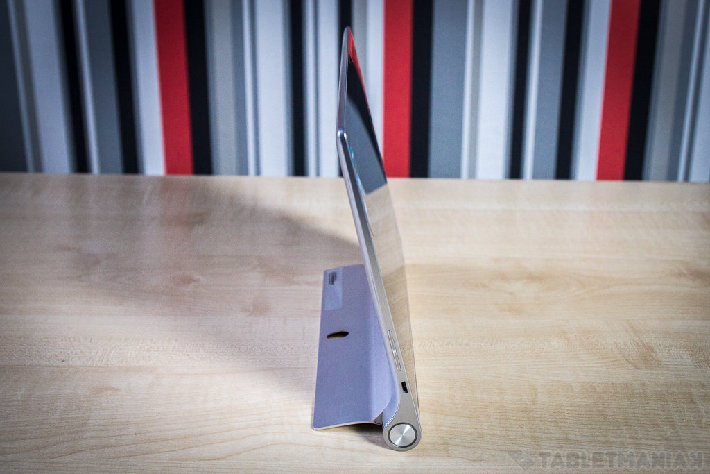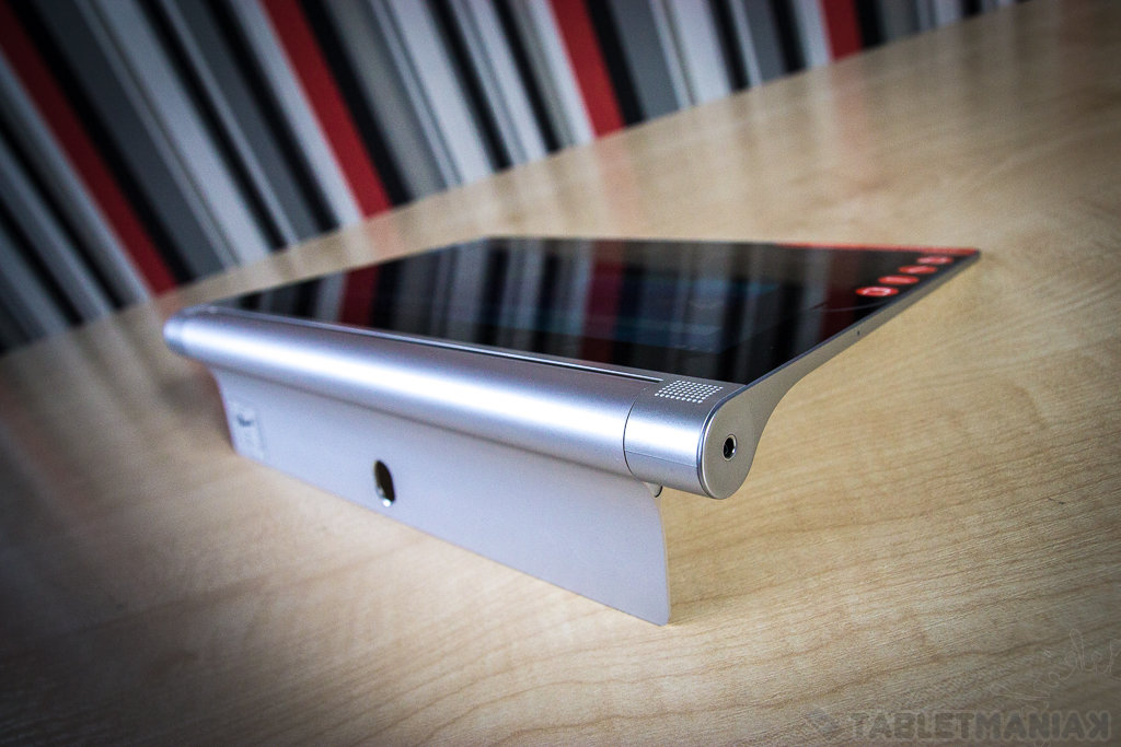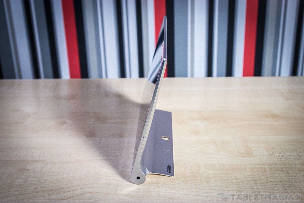 Kluczowym elementem Yogi jest jej aluminiowa podstawka. Działa w gruncie rzeczy tak samo, jak w przypadku pierwszej generacji – możemy odchylić ją, by ułożyć sprzęt w pozycji pionowej czy przestawić do pozycji poziomej. Z tabletu możemy również, oczywiście, korzystać trzymając go w dłoni (charakterystyczne wyoblenie pozwala na lepszą chwytność) bądź powiesić go na ścianie, co jest nowością w Yodze 2 10.