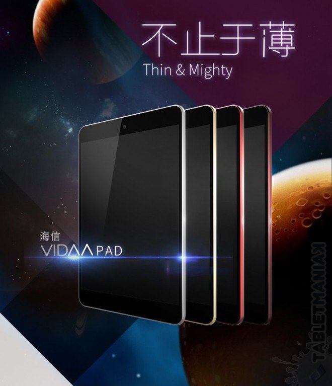 Pozostała część specyfikacji obejmuje 16GB pamięci wewnętrznej, z możliwością rozszerzenia kartą microSD. VIDAA Pad posiada również 8-megapikselowy aparat, Bluetooth 4.0 i akumulator o pojemności 4400 mAh. A wszystko to przy 6.35mm grubości i 320 gramach wagi.