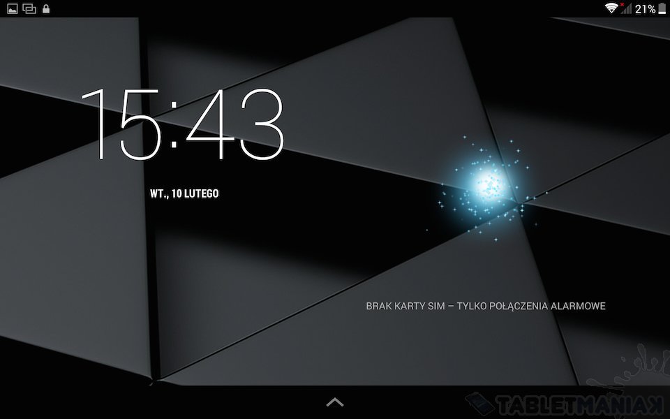 Producent nieznacznie ingerował w postać Androida w wersji 4.4.2, przez co szata graficzna systemu delikatnie różni się od standardowej. Główne zmiany zauważymy podczas odblokowania ekranu. Kiedy wybudzimy tablet, pojawi się niebieska kula, której przeciągnięcie w odpowiednim kierunku odblokuje urządzenie, przeniesie nas do aparatu, skrzynki SMS-ów lub do usługi Google Now. Logo producenta znajdziemy jeszcze w formie ikony aplikacji, która przenosi do siatki zainstalowanych programów. Poza tymi subtelnymi alternacjami, zmian w warstwie graficznej nie zauważyłem.