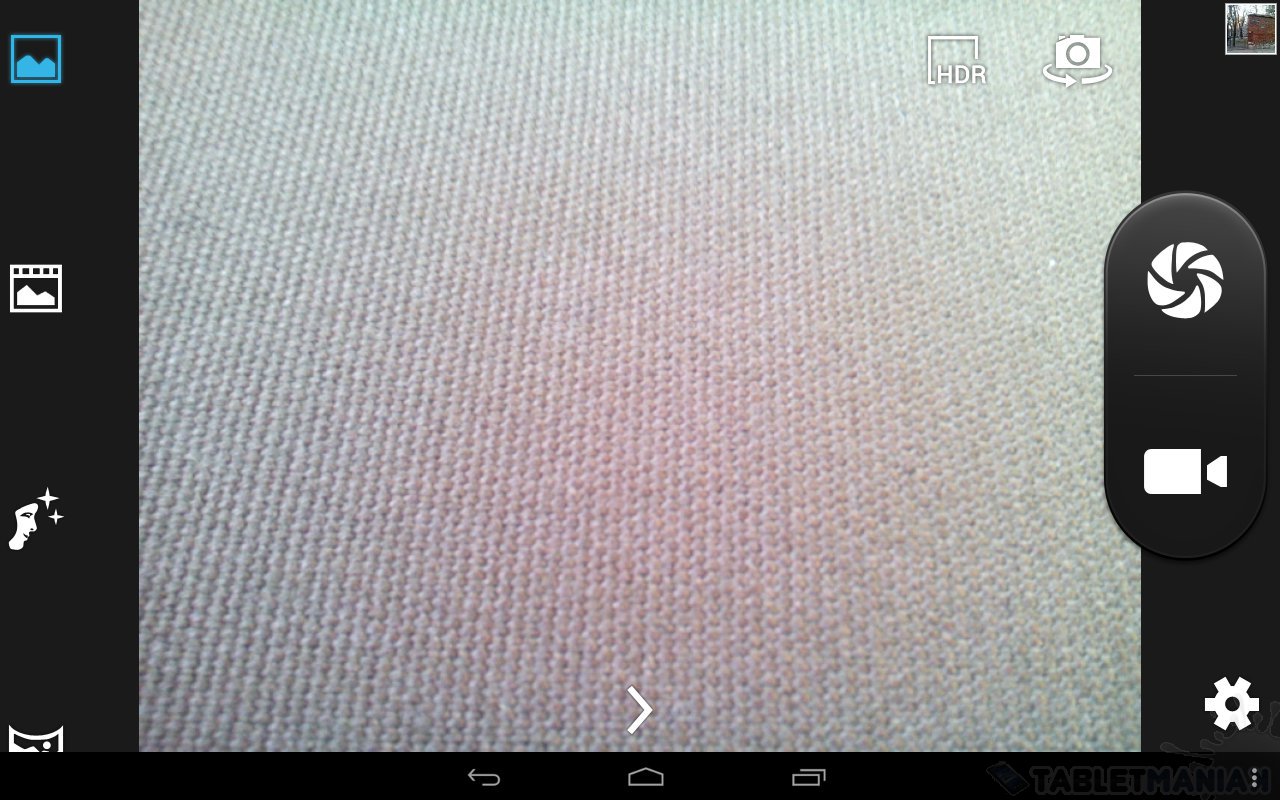 Do wykonywania zdjęć otrzymujemy 5-megapikselowy aparat bez lampy błyskowej czy autofokusu. Wprawdzie aplikacja do robienia zdjęć, którą w tym przypadku jest standardowe oprogramowanie Androida, próbuje wyostrzyć obraz na fotografowanym obiekcie, lecz na niewiele się to zdaje. Aparat nie jest mocną stroną tabletu i nie należy sugerować się w tym przypadku podaną specyfikacją.