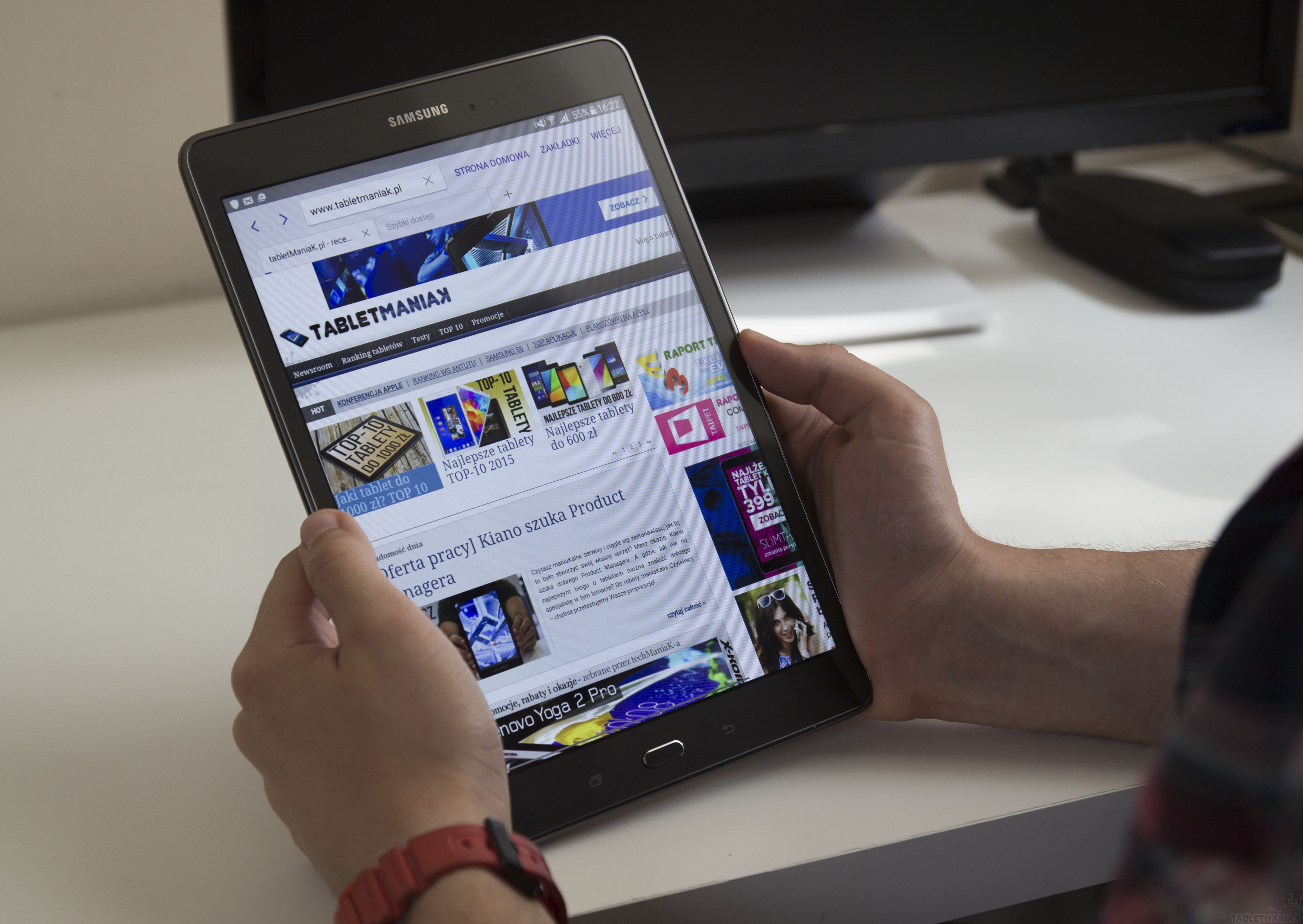 Korzystanie z tabletu przez dłuższy czas nie skutkuje zmęczeniem dłoni. W moim odczuciu gabaryty Galaxy Taba A 9.7 są odpowiednie. Wagą (456 gramów) tylko nieznacznie przewyższa iPada Air 2 (437 gramów), a wąskie ramki boczne ekranu pozwalają na wygodne trzymanie urządzeniu przy zachowaniu nowoczesnego wyglądu.