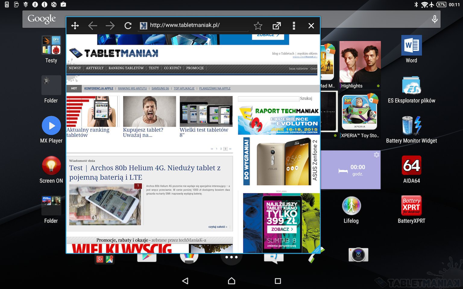 Sony podchodzi więc znacznie ostrożniej do kwestii multitaskingu, który u Samsunga jest rozwinięty niemal do poziomu Windowsa. A szkoda, bo Xperia Z4 Tablet ma podłoże techniczne umożliwiające znacznie więcej niż tylko obsługę „drobnych aplikacji”. Być może niedawno ogłoszona aktualizacja iOS 9, która wprowadza podobną funkcję do iPada Air 2 przyczyni się do zmian w nakładce Sony.