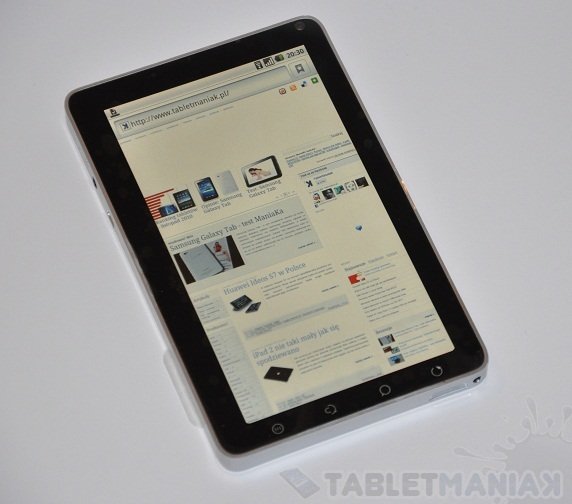 Przechodząc do konkretów. Najbardziej w oczy rzuca się sporych rozmiarów, 7-calowy, błyszczący ekran – podobny jak w Samsungu Galaxy Tab – z tą tylko różnicą, że jest zupełnie inny w dotyku. Trochę szorstki, ale uczucie jak najbardziej pozytywne. Gdy wziąłem tablet do ręki po raz pierwszy, byłem zdziwiony jego wagą. Wszystkie podzespoły umieszczono wewnątrz rewelacyjnej aluminiowej obudowy, przez co tablet wydał mi się cięższy niż Galaxy Tab. W rzeczywistości waga obu urządzeń jest niemalże taka sama (różnica 0.05g). Rozmieszczenie poszczególnych portów wydaje się być rozsądne, choć mam tu pewne zastrzeżenia. Producent skonstruował tablet tak, aby przez większość czasu trzymało się go w pozycji poziomej (Samsung w pionie), co może sugerować specyficzne ułożenie głośników. Przycisk zasilania umieszczony u góry urządzenia jest chyba trochę za bardzo wkomponowany w obudowę, gdyż dość trudno się go wciska – ale to kwestia przyzwyczajenia. Pod względem wizualnym, Viewad 7 bardzo mi się spodobał, choć jeśli miałbym wybierać między tym tabletem, a Samsungiem, miałbym problem z podjęciem decyzji.