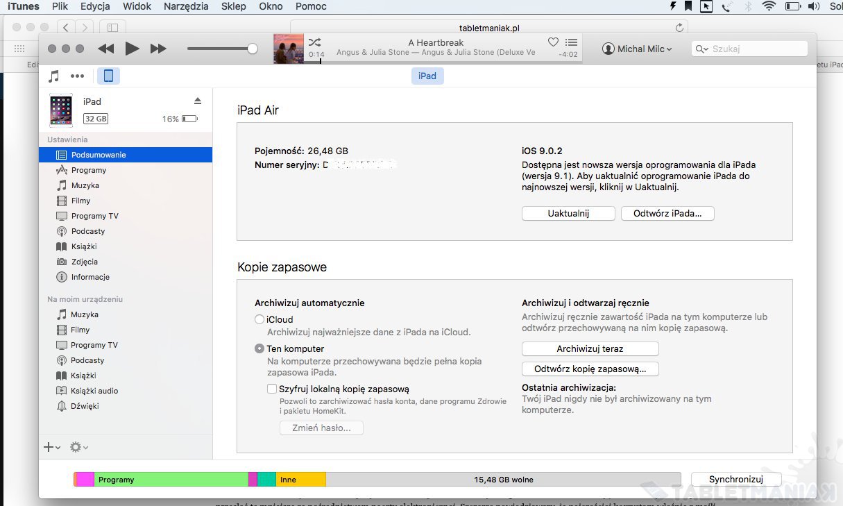 Twój iPad lubi porządek, dlatego możesz synchronizować dane z komputerem, ale zamiast umieszczania plików folderach, wkładasz je bezpośrednio do odpowiednich aplikacji na tablecie. Pierwszy krok — trzeba zainstalować iTunes, które pomoże Ci zarządzać iPadem: zsynchronizować muzykę, książki, filmy, zakładki itd., uporządkować ekrany początkowe i stworzyć kopię zapasową pamięci tabletu. Za pośrednictwem tego programu możesz też umieścić własne pliki, np. filmy. Jak tego dokonać?