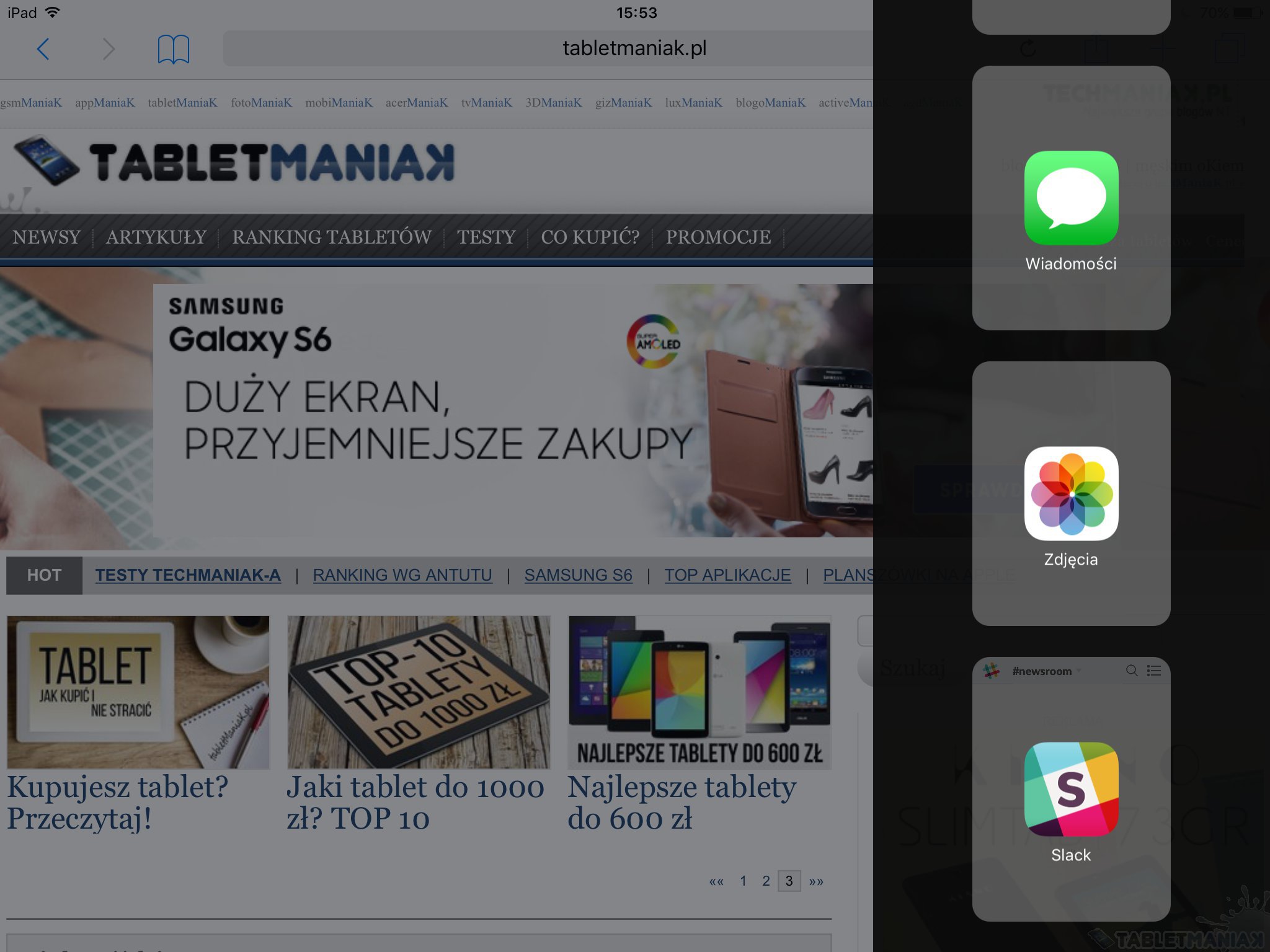 Multitasking jest aktywny we wszystkich tabletach wyposażonych w iOS 9. Kiedy masz uruchomiony już jakiś program, przesuń palcem od prawej krawędzi ku środkowej części ekranu, a wyświetli Ci się lista aplikacji, które działają w trybie multitaskingu.