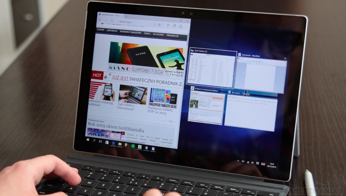 Wysoka rozdzielczość oferująca zagęszczenie pikseli wynoszące 267 ppi owocuje wyrazistym obrazem – tak dobrym, jak w laptopach pokroju Dell XPS 13 czy Lenovo Yoga 3 Pro. Po drugiej stronie medalu kryje się jednak problem ze skalowaniem treści. Dobrze radzą sobie tutaj natywne aplikacje Windowsa — korzystając z przeglądarki Microsoft Edge lub przeglądając pliki PDF nie będziemy mieć problemów z odczytaniem wyświetlanej zawartości.