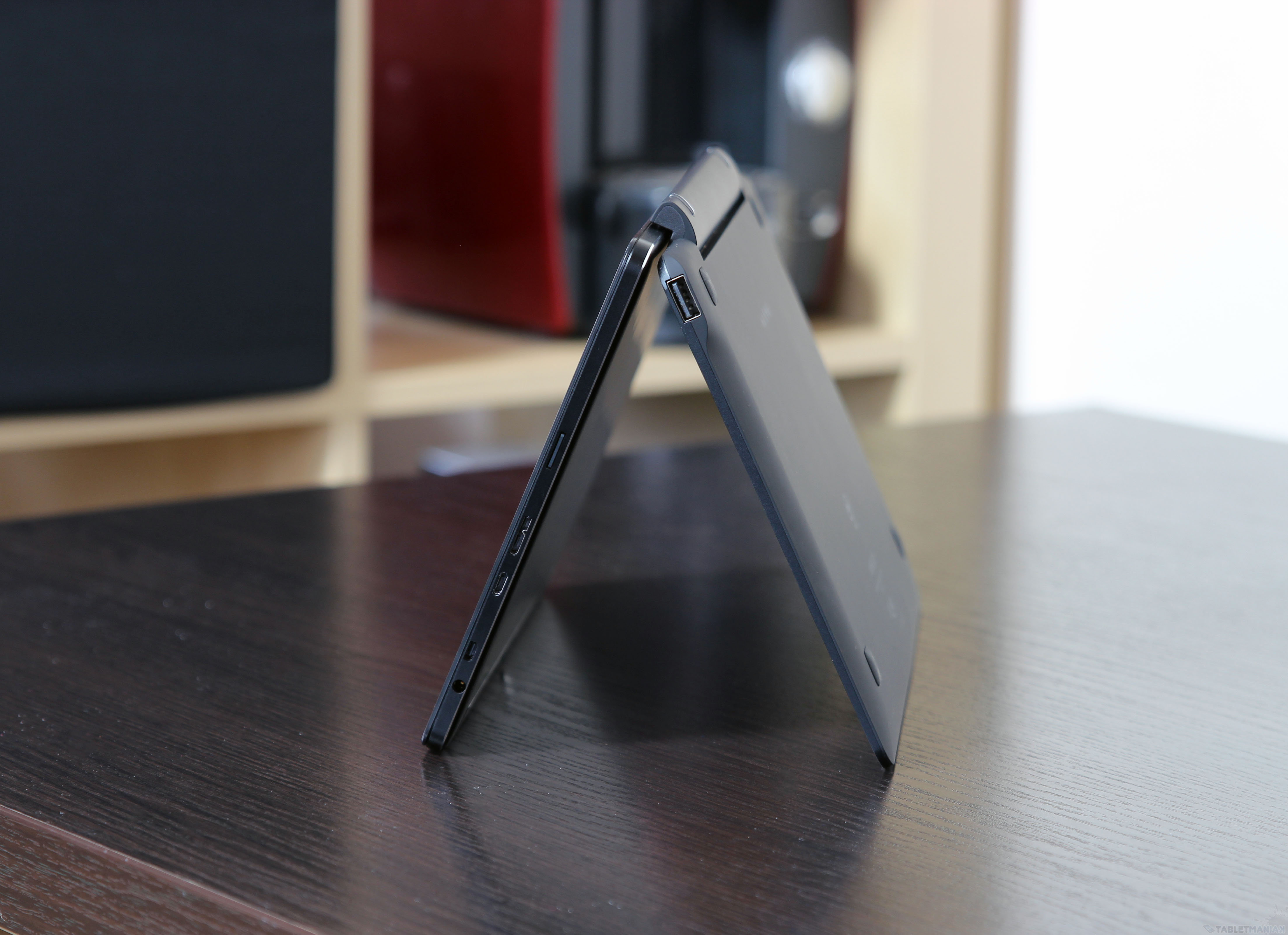Na tym samym boku tabletu, gdzie umieszczono porty USB, mieści się jeszcze wyjście micro-HDMI oraz slot na kartę microSD. Nie przeszkadza mi takie duże nagromadzenie elementów po jednej stronie urządzenia, ale szkoda, że producent zdecydował się oba głośniki multimedialne umieścić na prawym boku. Gdyby zdecydowano się je rozdzielić, nie byłoby praktycznie do czego się przyczepić.