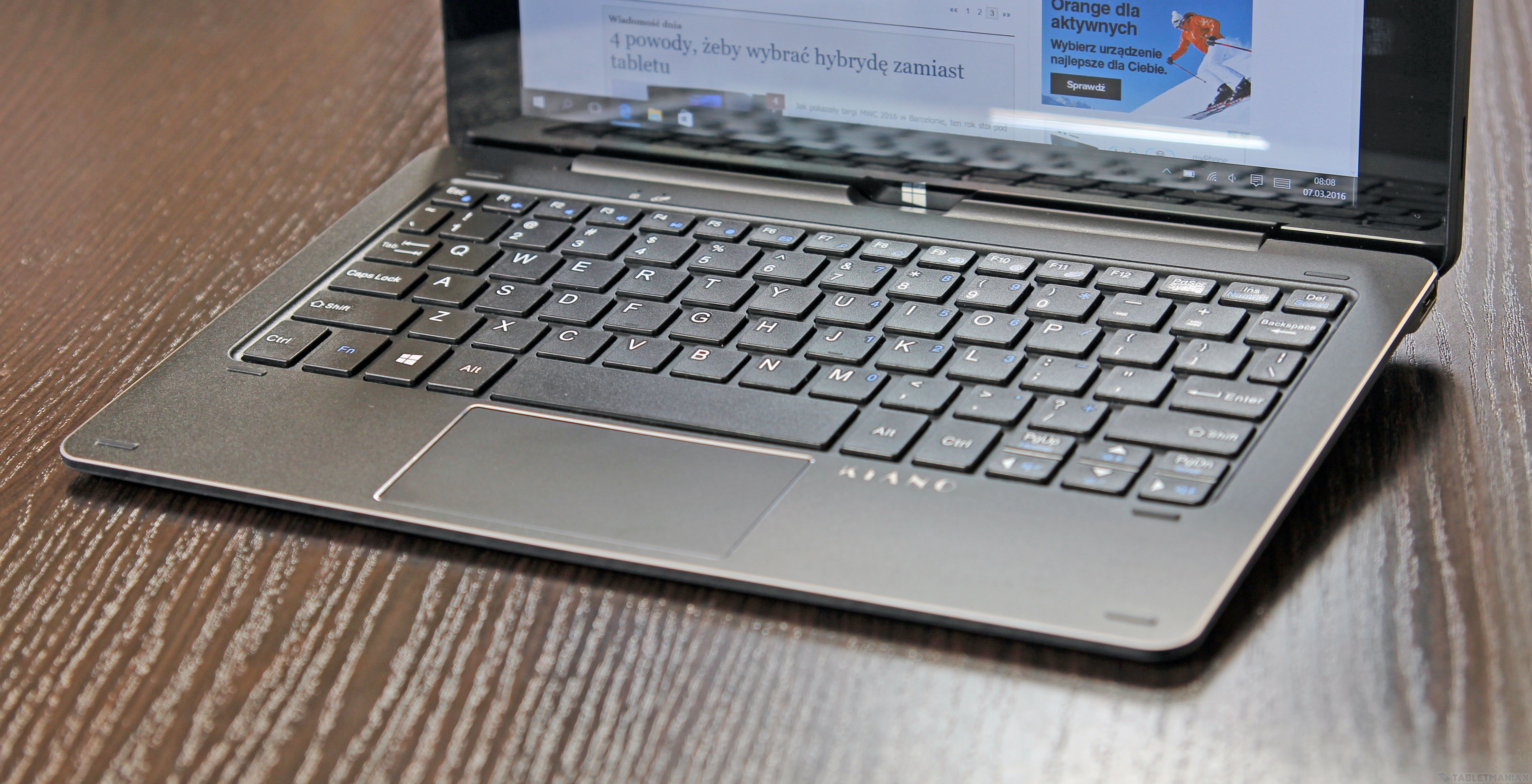 Oczywiście z Kiano nie jesteśmy skazani na stałe korzystanie z klawiatury, ponieważ oba komponenty są łatwe do rozłączania, dzięki czemu w codziennym użytkowaniu mogłem szybko i wygodnie dostosować urządzenie do swoich potrzeb. Kiedy chciałem skupić się na multimediach, korzystałem z samego tabletu bez stacji dokującej. Zdarzyło się jednak, że potrzebowałem popracować w trakcie podróży i wtedy klawiatura okazała się bardzo przydatnym dodatkiem.