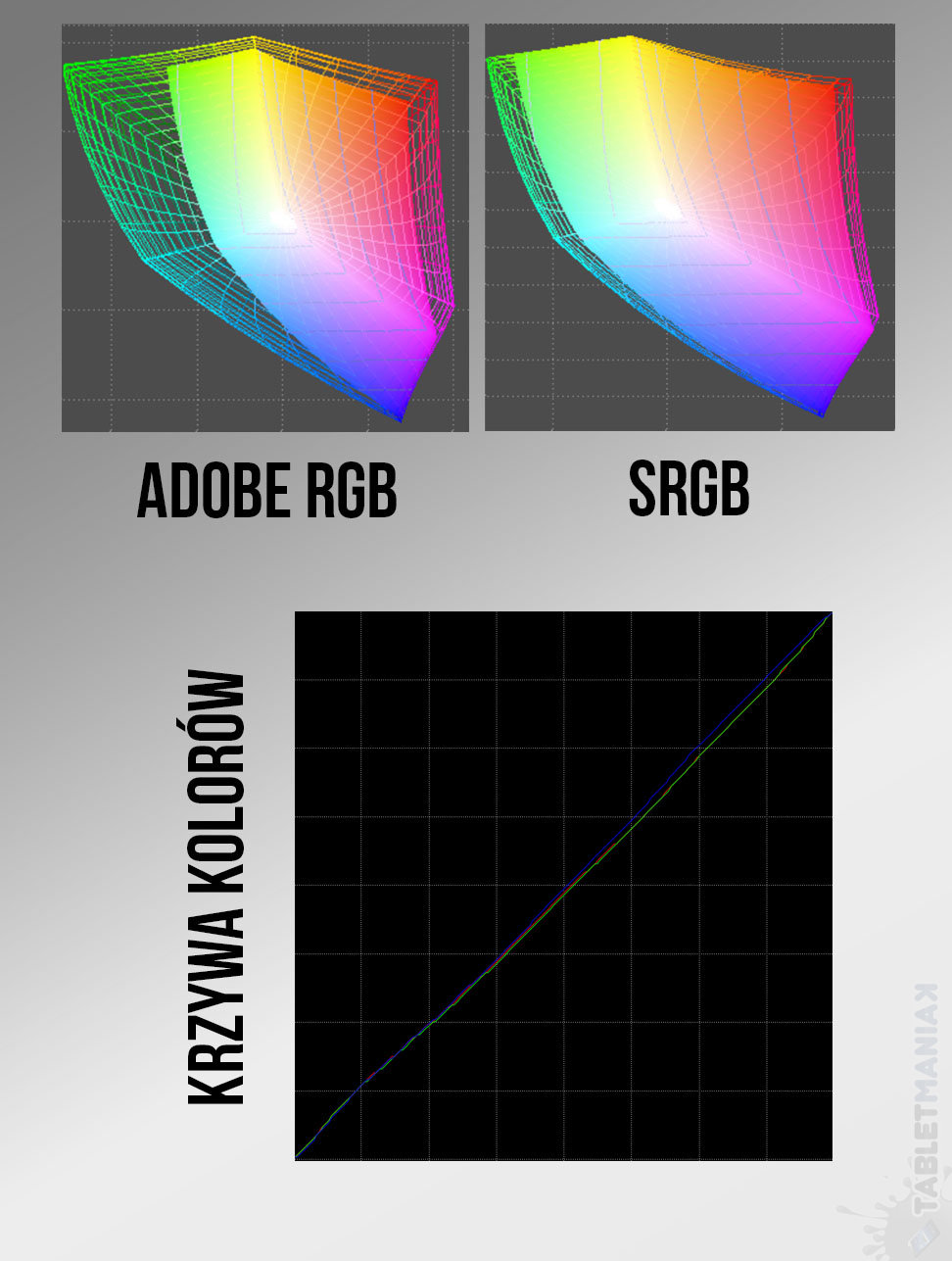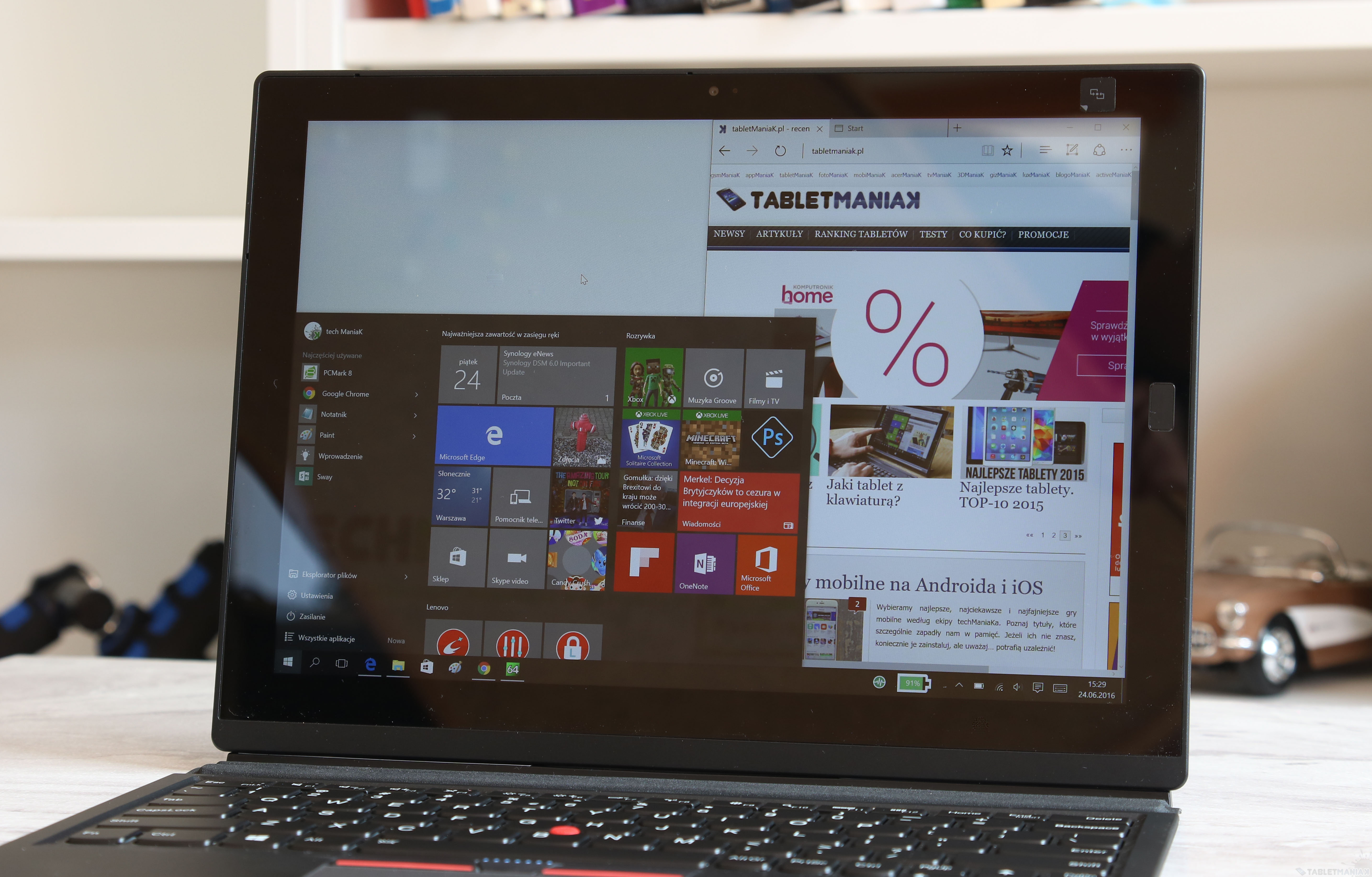 Matryca IPS oferuje szerokie kąty widzenia, więc nawet przy większych odchyleniach tabletu nie pojawiają się przekłamania barw. Nie jestem jednak zadowolony z pokrycia palety kolorów, jakie oferuje wbudowana matryca — 86% dla sRGB o tylko 60% dla Adobe RGB, podczas gdy Dell XPS 12 (9250), którego kupimy za zbliżoną kwotę do testowanego modelu posiada dla obu 100% pokrycie. W tym modelu znajdziemy też wyższą rozdzielczość, bo aż 4K. Oba urządzenia jednak mają dobry profil kolorystyczny, więc nie potrzebna będzie dodatkowa kalibracja.