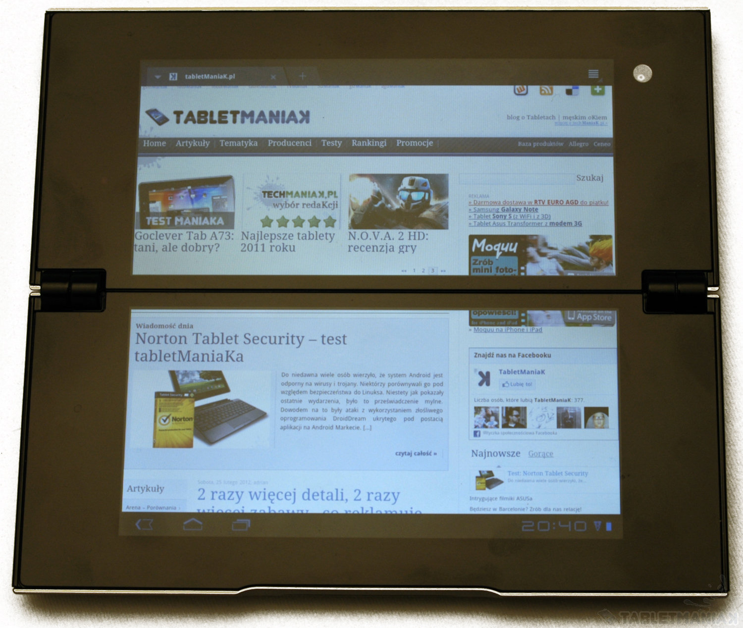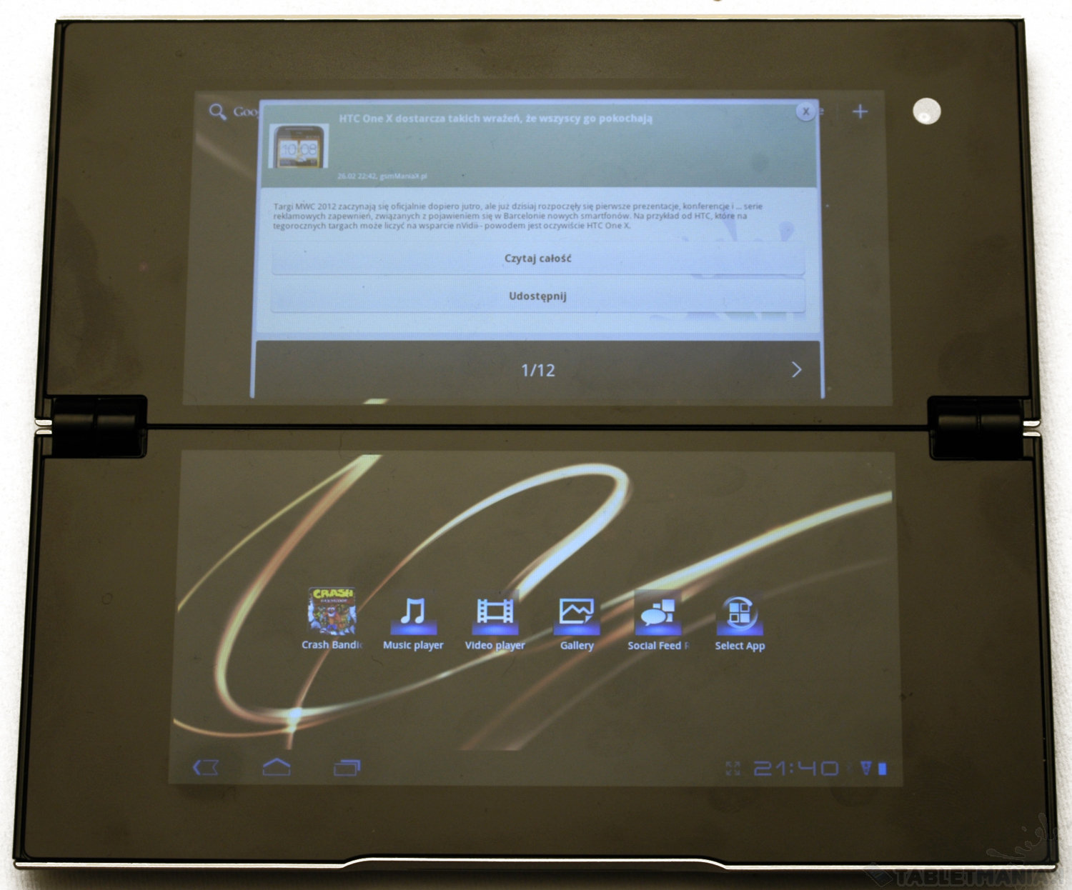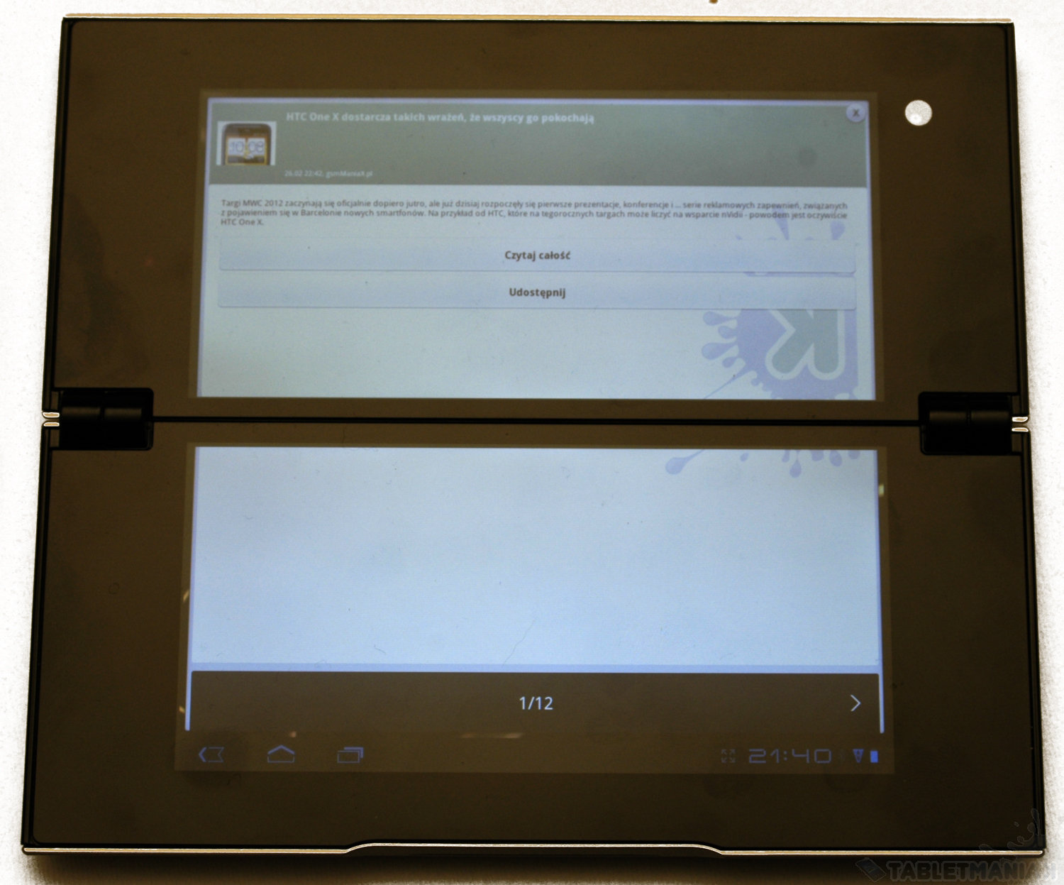 Testowa wersja aplikacji techManiaKa na Sony Tablet P - tryb ekranu dzielonego / fot. tabletManiaK.pl